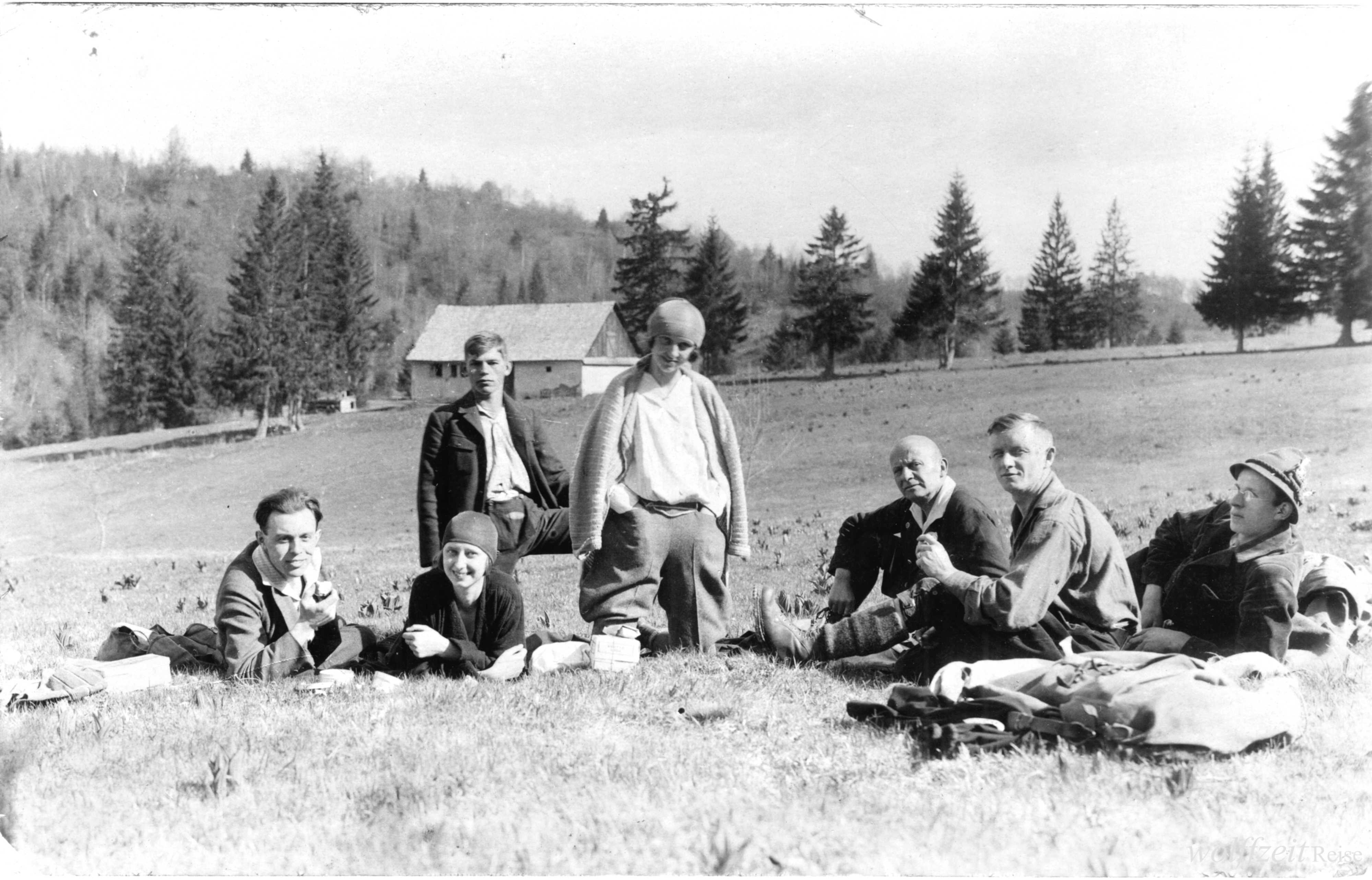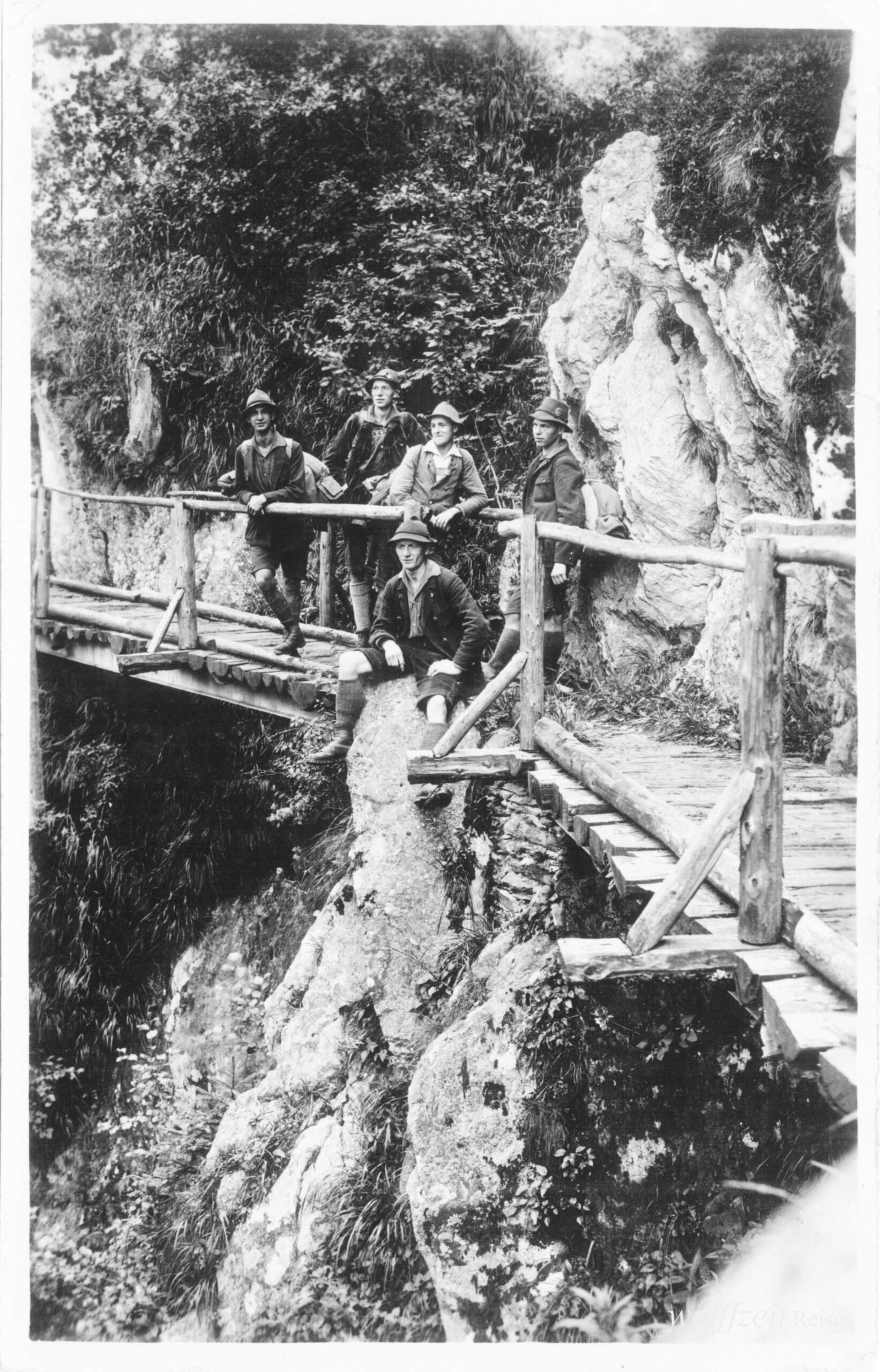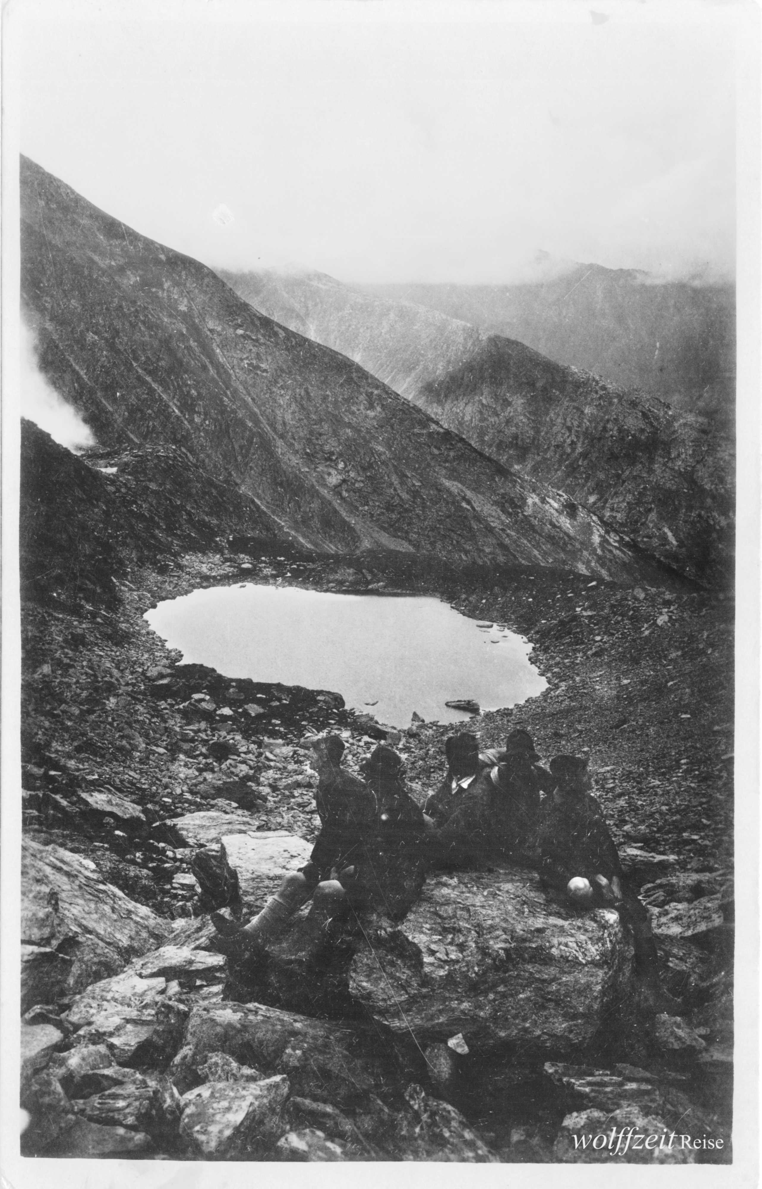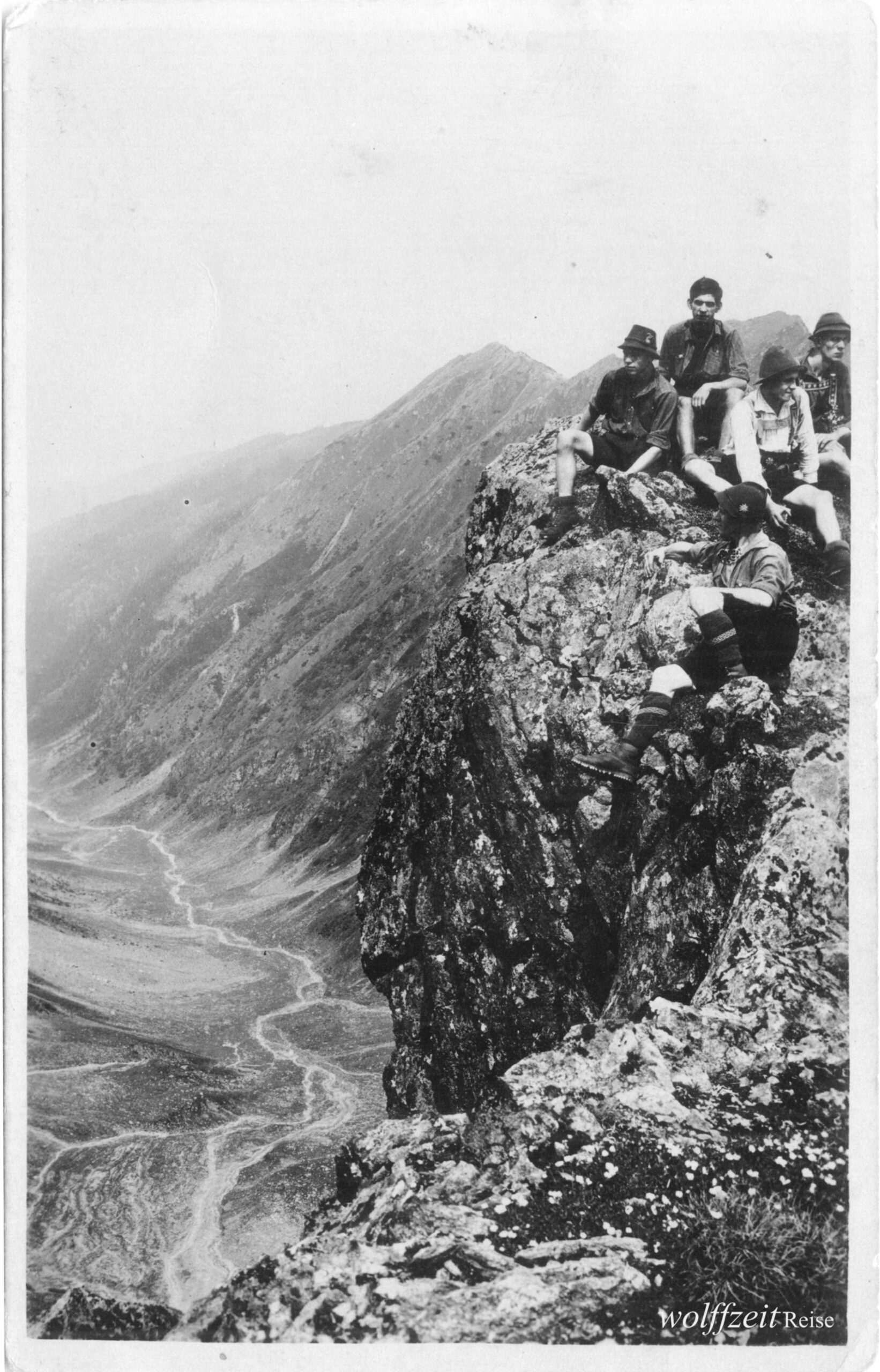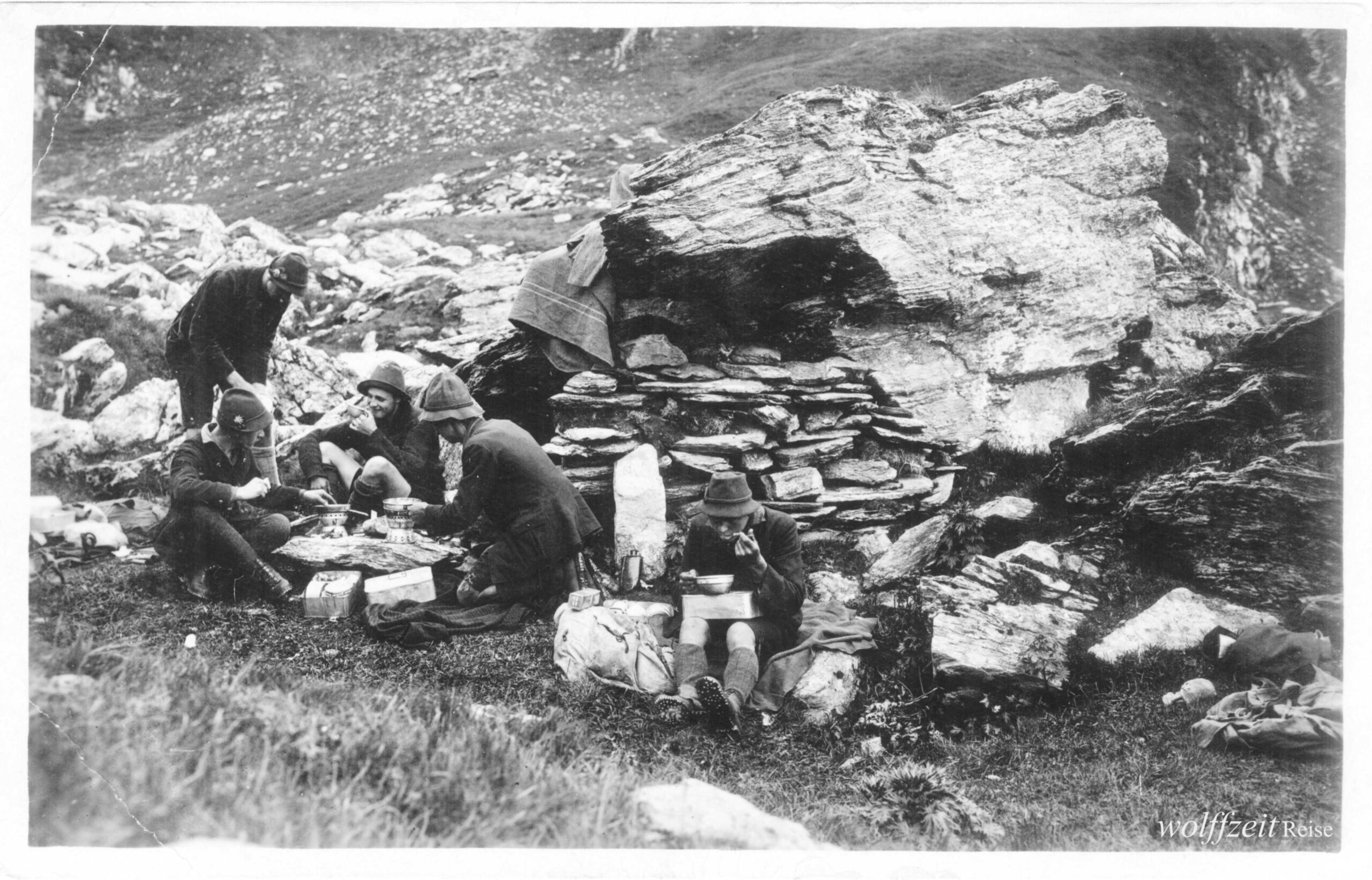 Rückseite beschriftet: „Pfingsten 1925. Rast bei dem Aufstieg auf den Buceci bei Kronstadt.” //