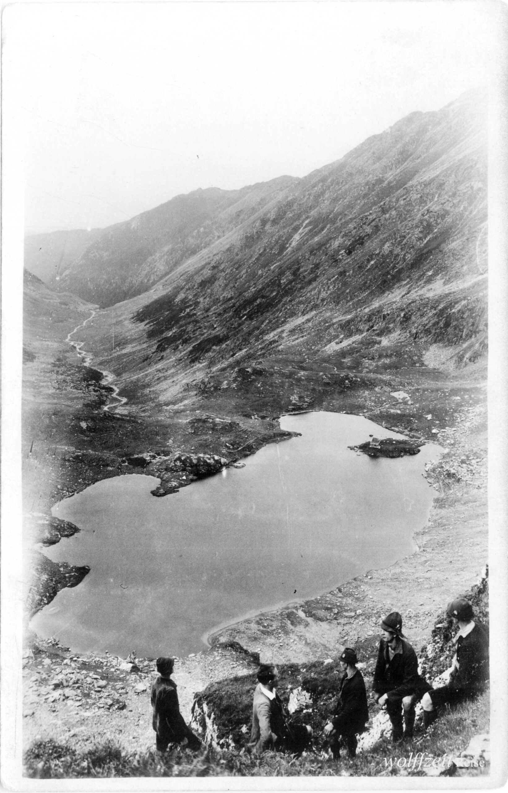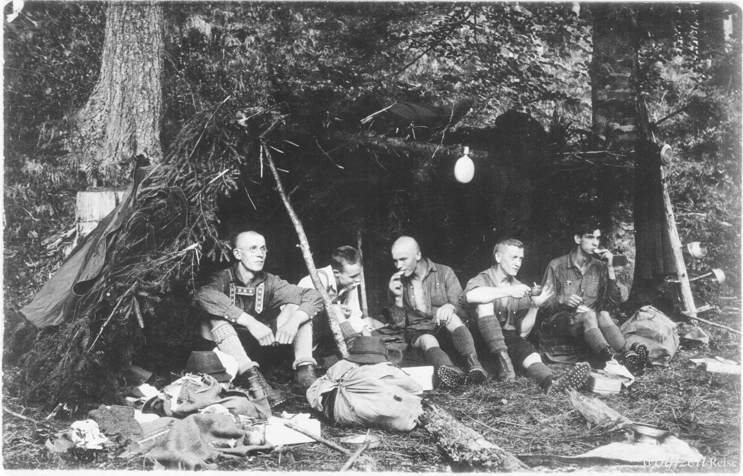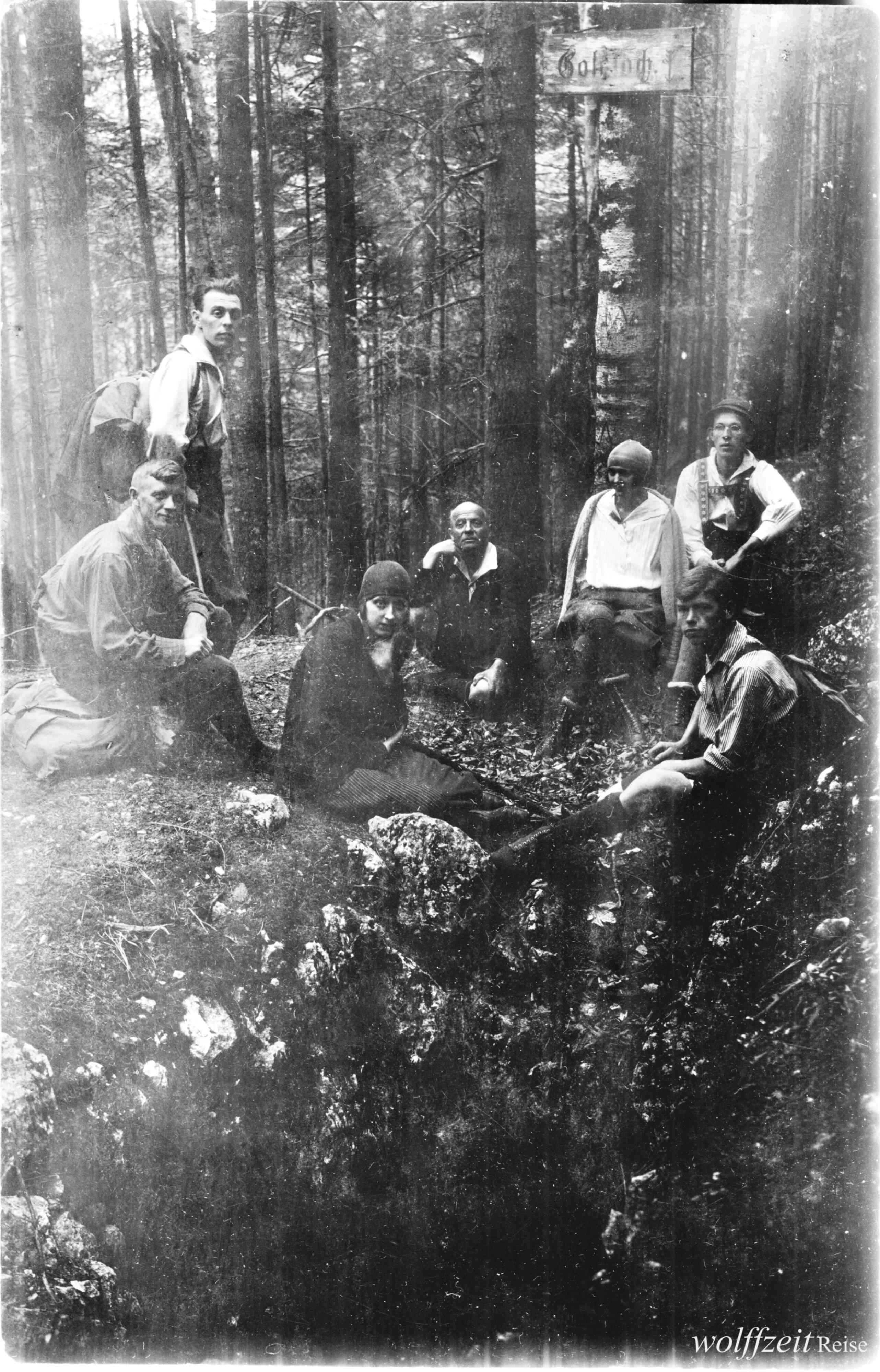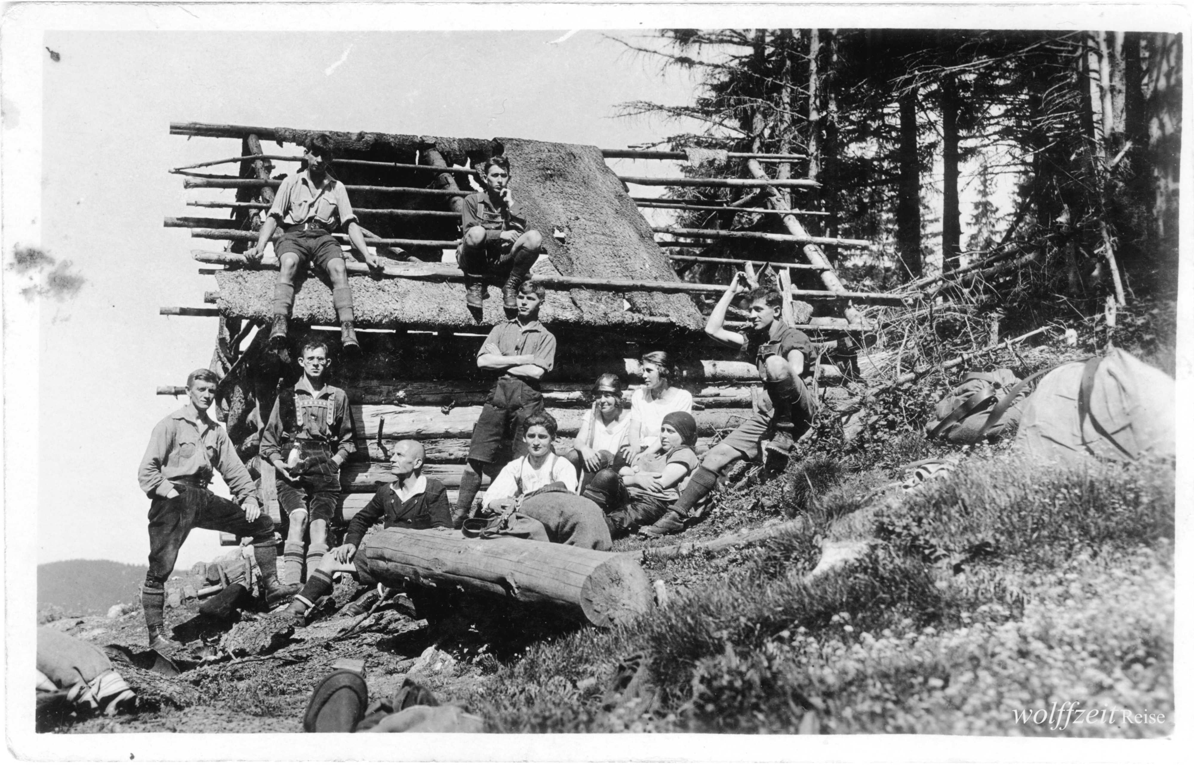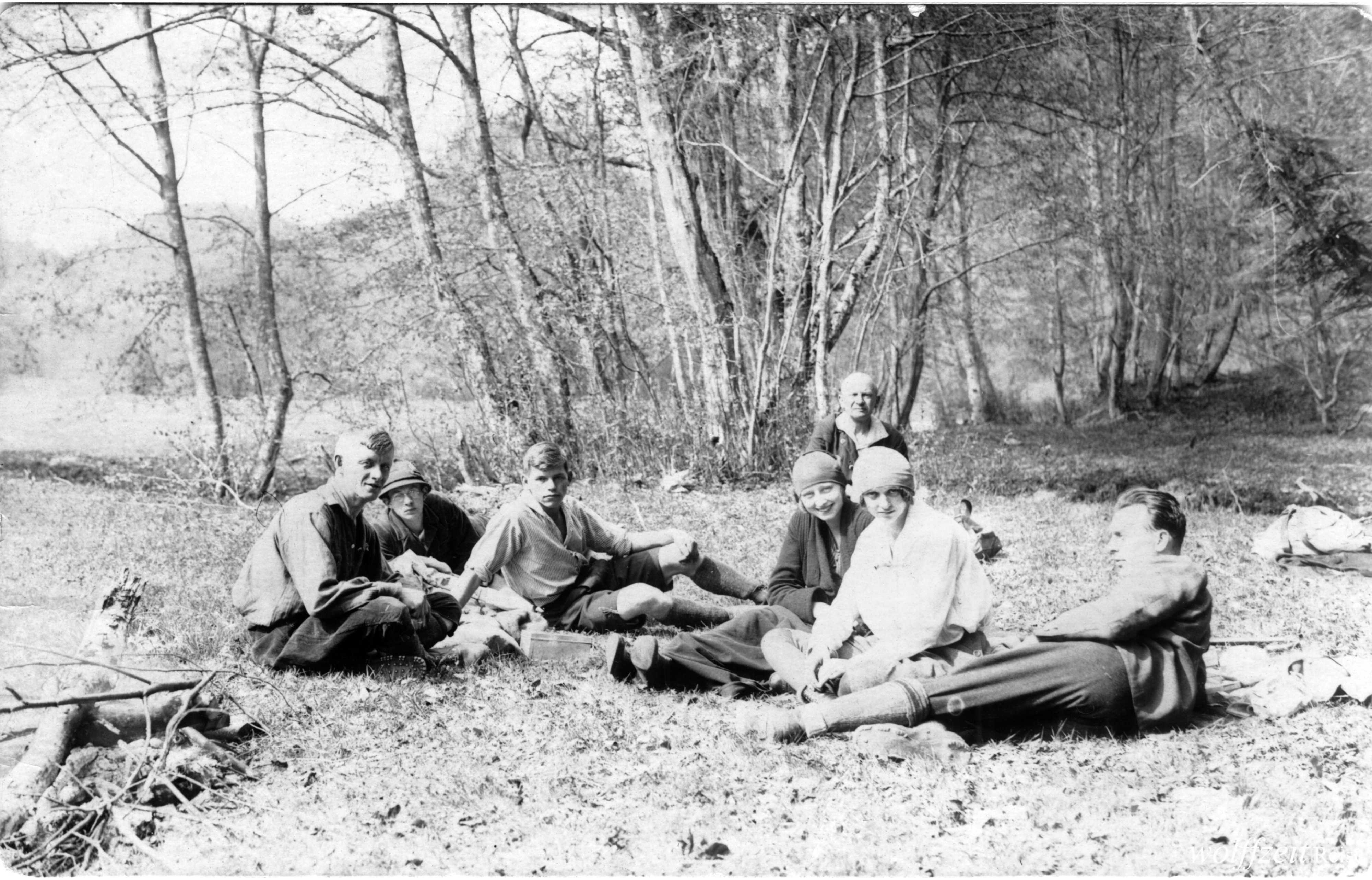 Rückseite beschriftet: „Pfingsten 1925. Rast bei dem Aufstieg auf den Buceci bei Kronstadt.” //