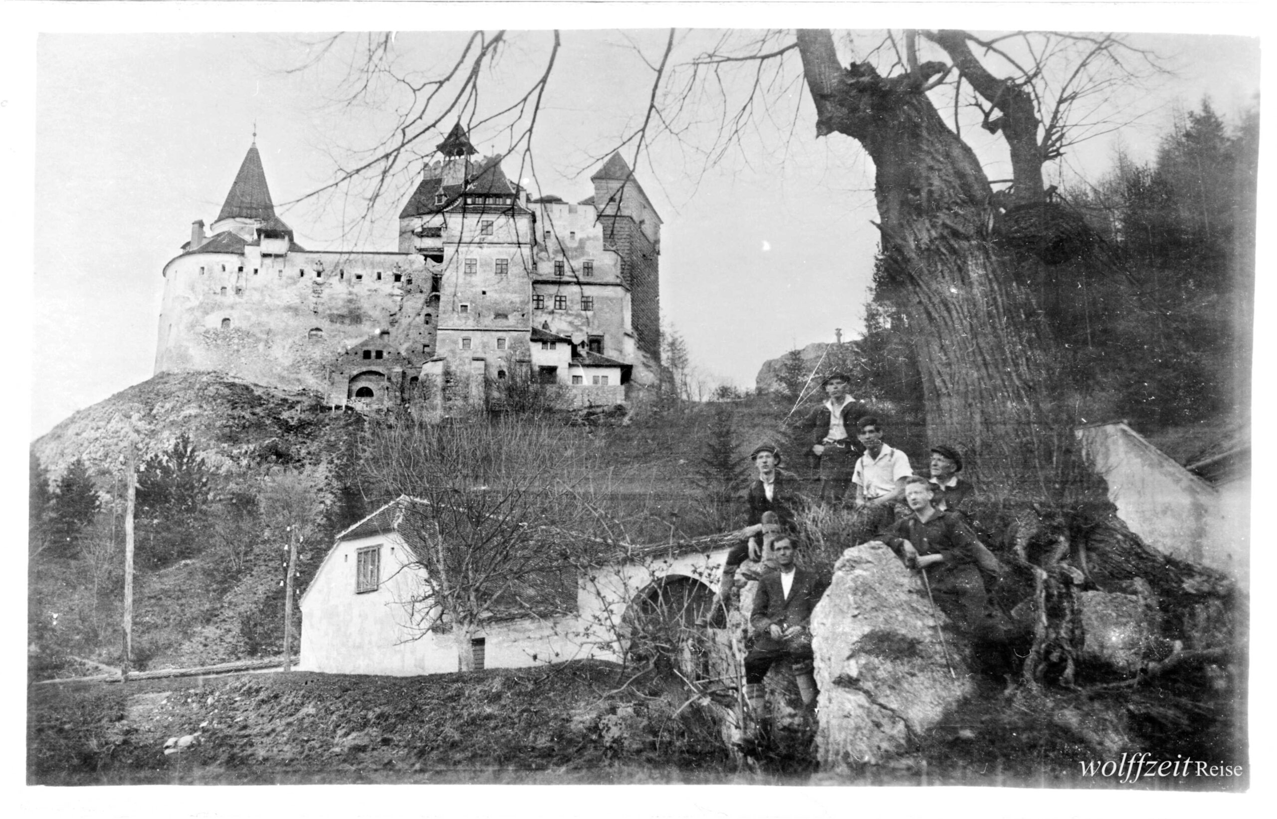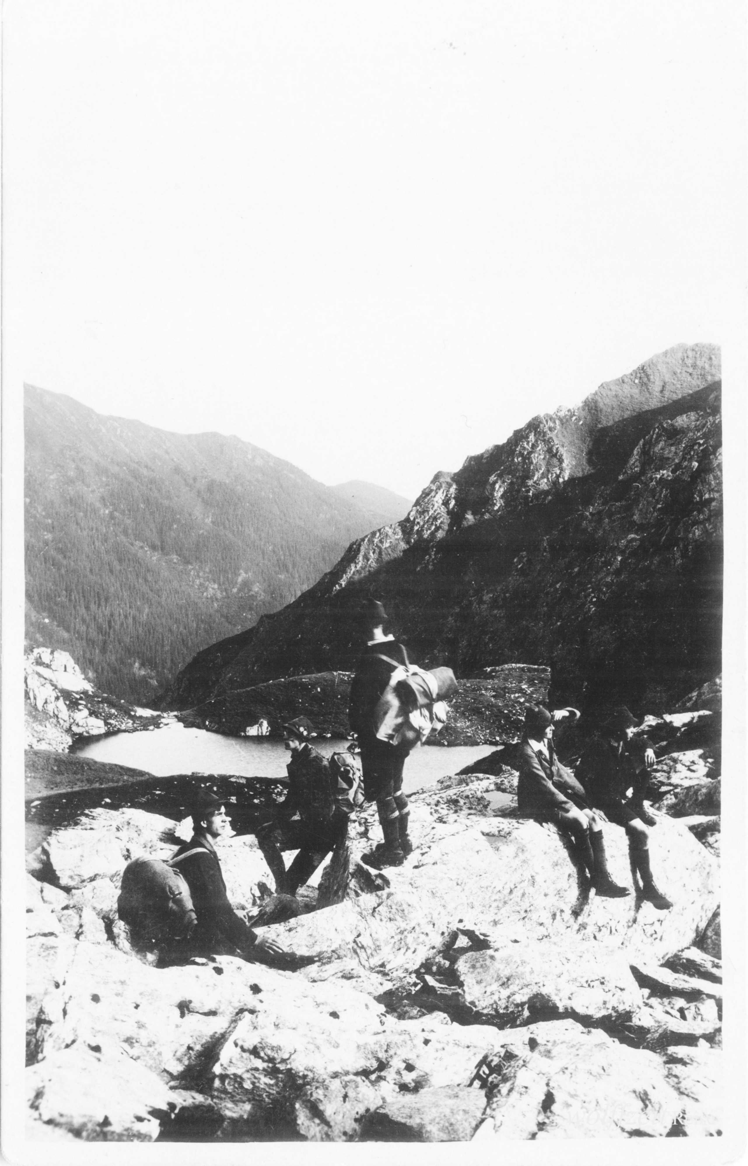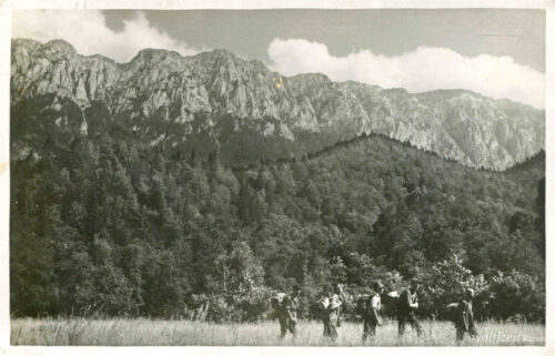 Verso inscripționat: „Rusaliile 1925. Popas în timpul ascensiunii pe Bucegi lângă Brașov.”* * *
