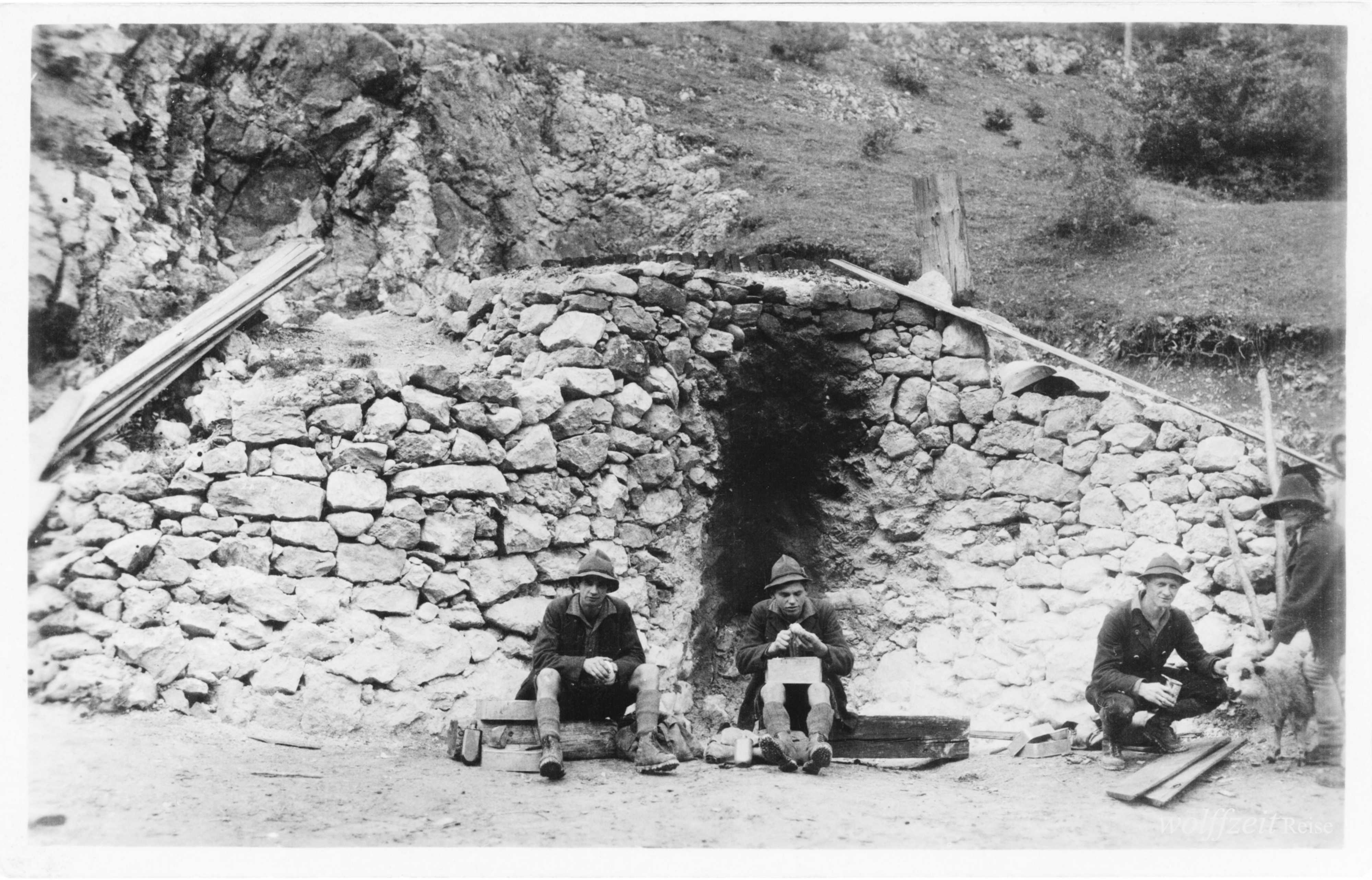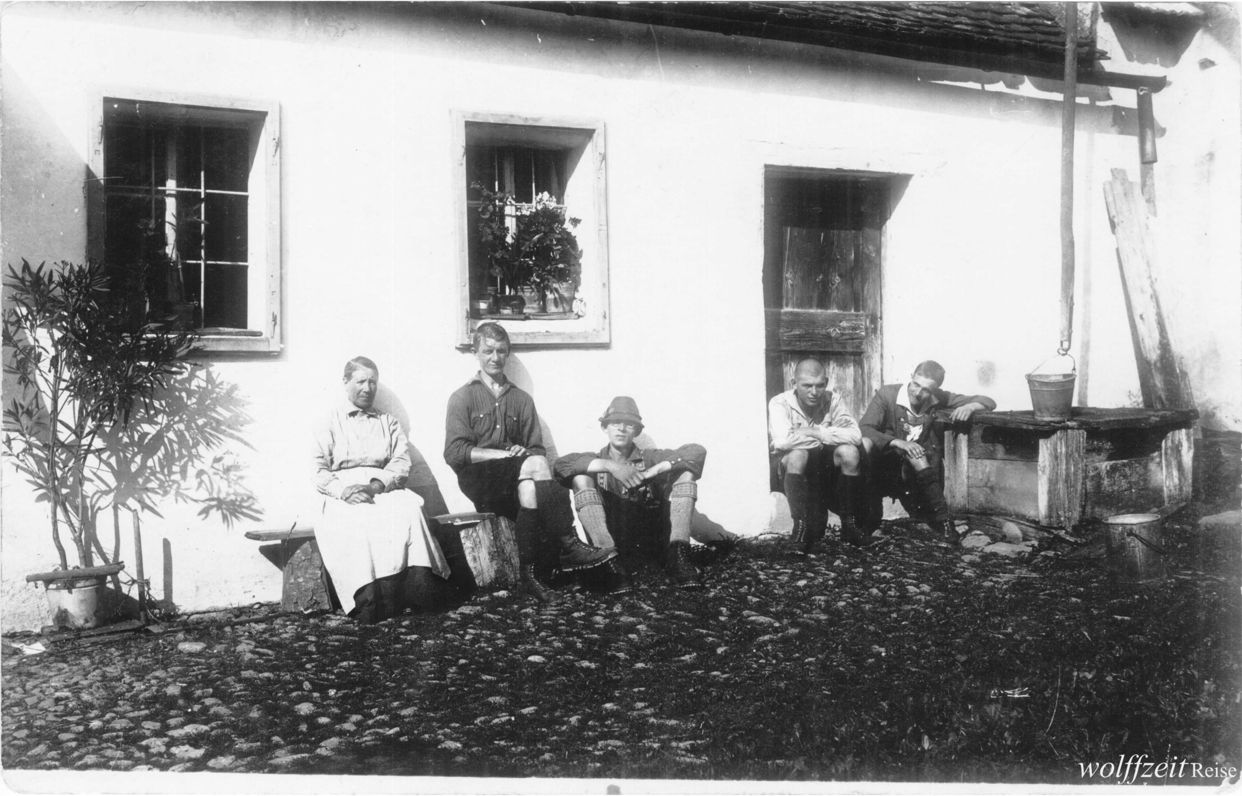 în partea stângă cu pălărie: Lehmann, lângă el bunicul Jos Habicher -