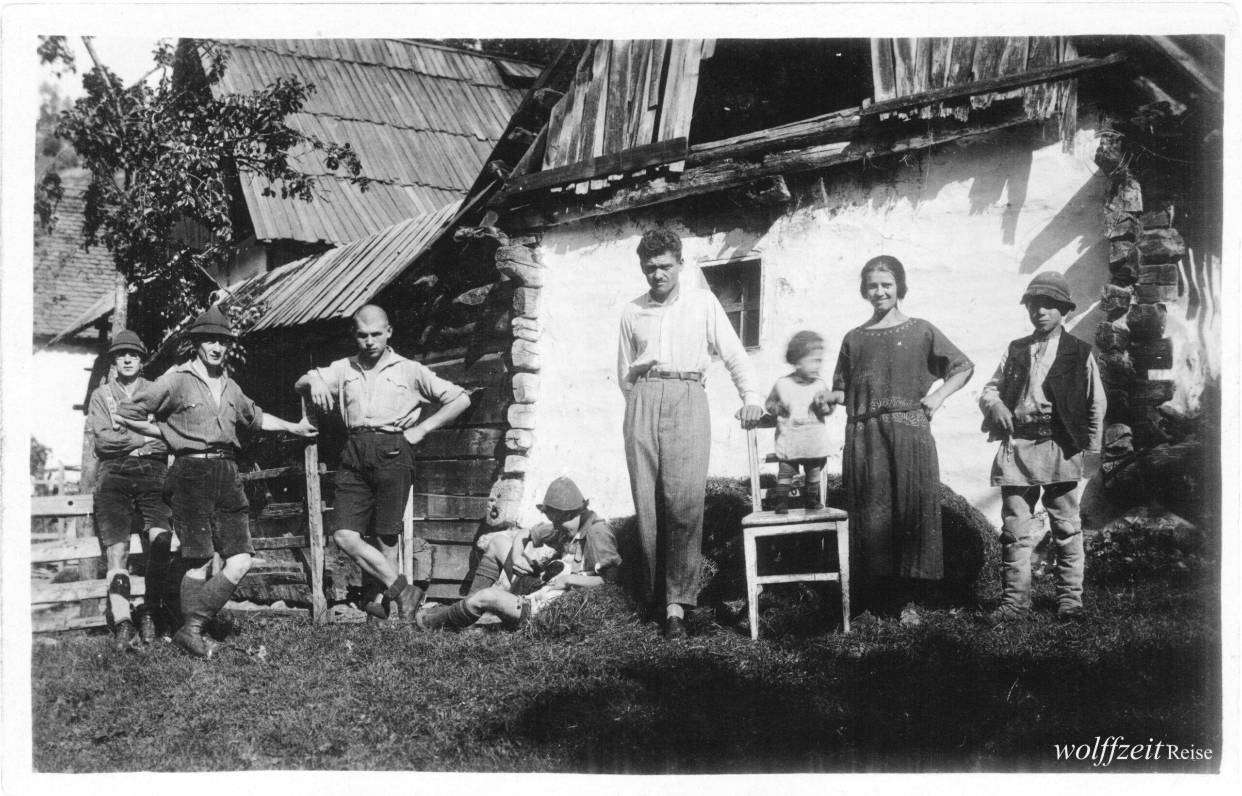 Bergwanderung im Zibins-Gebirge mit Josef Habicher (1904-1945), Berglegende Karl Lehmann (1894-1990) und SKV-Freunden / 1925. Mein Großvater, der Hermannstädter Josef / Jos Habicher, ist der Zweite von rechts im ersten Foto. Sein Freund Karl Lehmann sitzt auf der Bank neben der Frau.