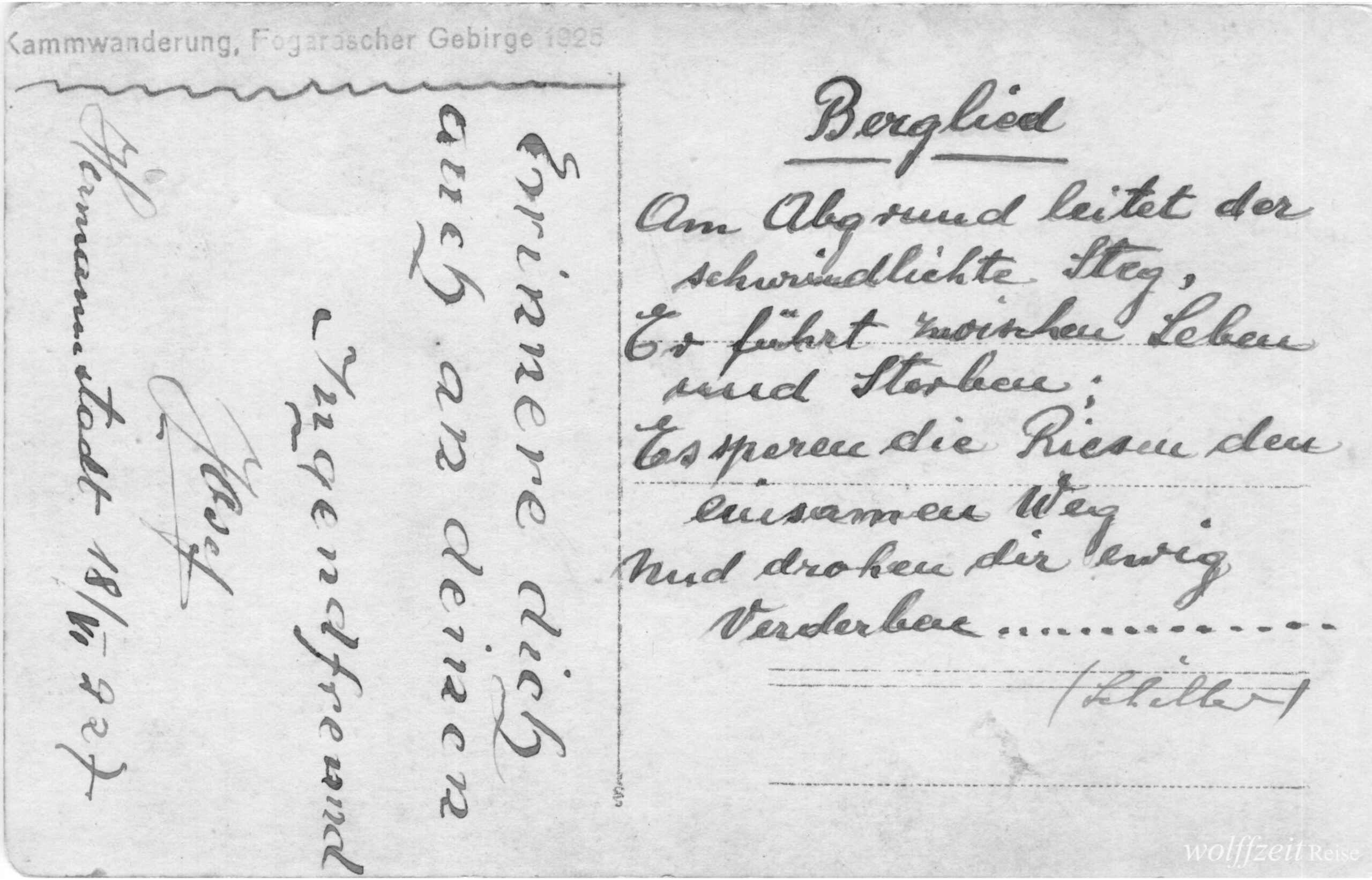 și primele patru rânduri din poezia „Berglied” (Cântec de munte) a poetului Friedrich Schiller.* * *