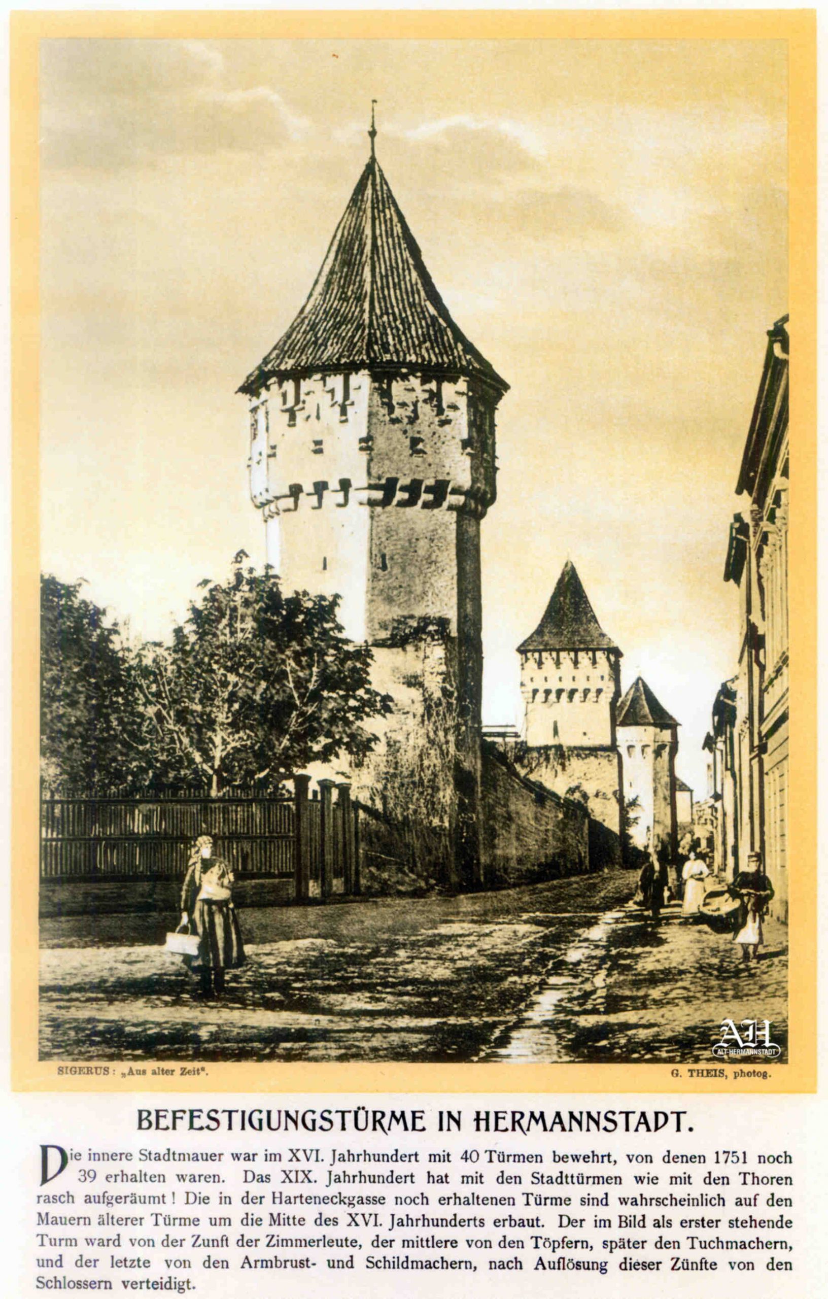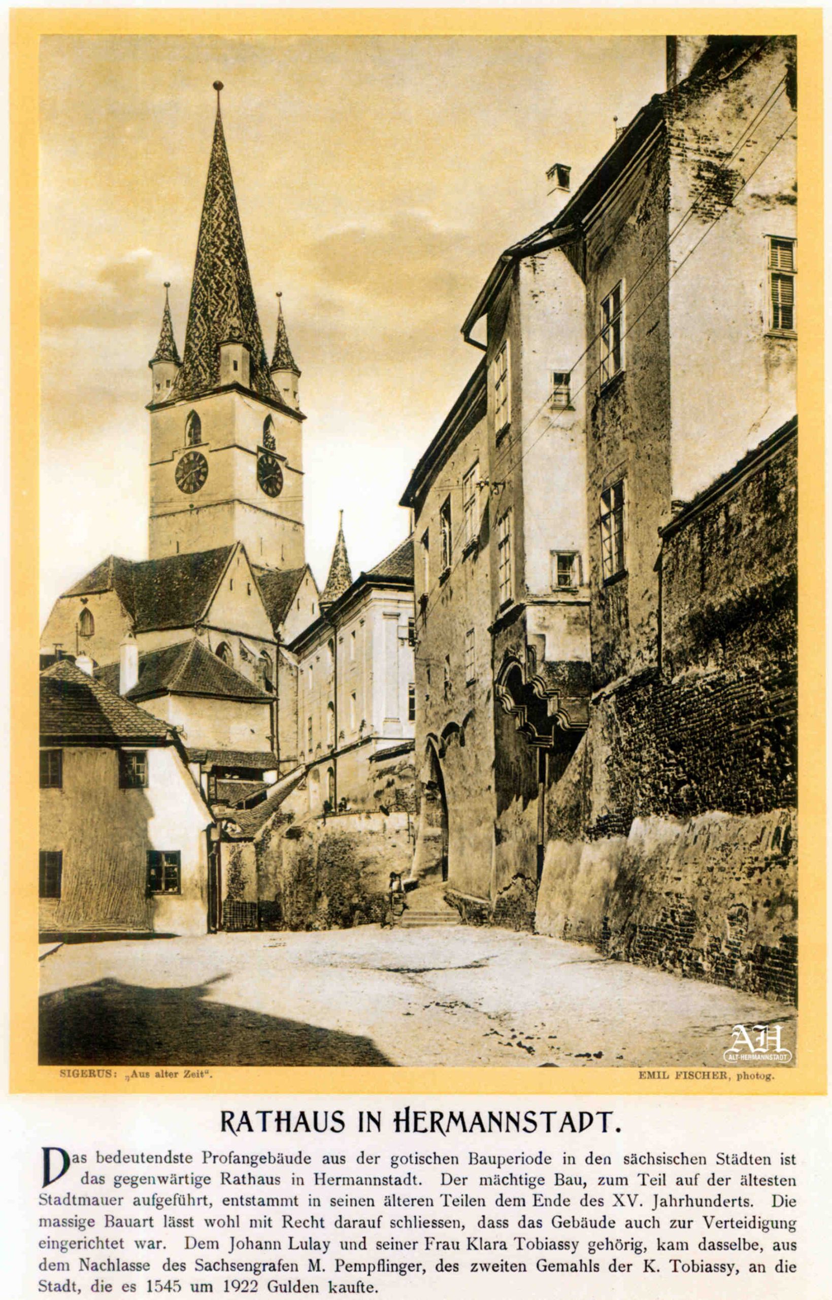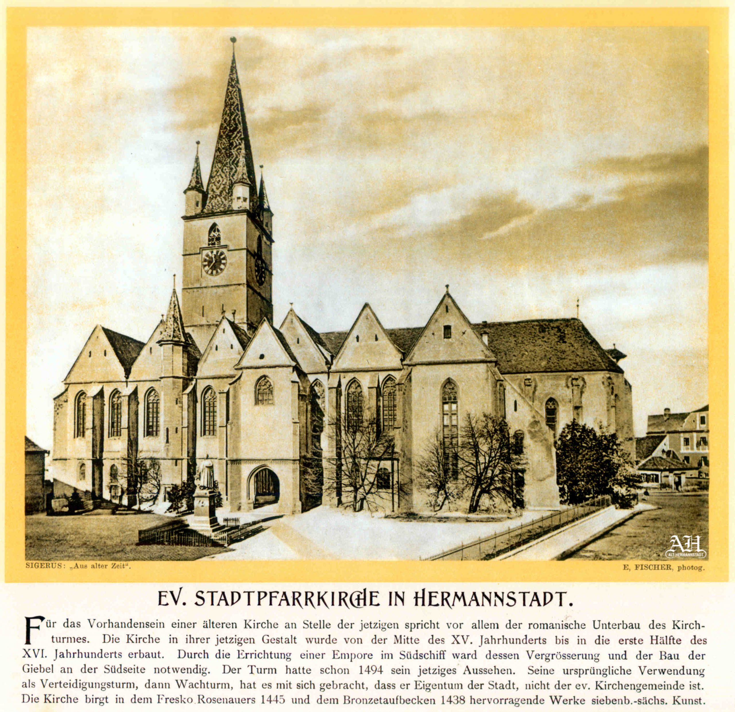 Albumul Siebenbürgisch-Sächsische Burgen und Kirchenkastelle // Cetăți și Biserici fortificate săsești din Ardeal a fost editat de Emil Sigerus 1900 și tipărit la Institulul tipografic sibian „Kunstanstalt Jos. Drotleff, Hermannstadt“ / proprietar Peter Drotleff.
