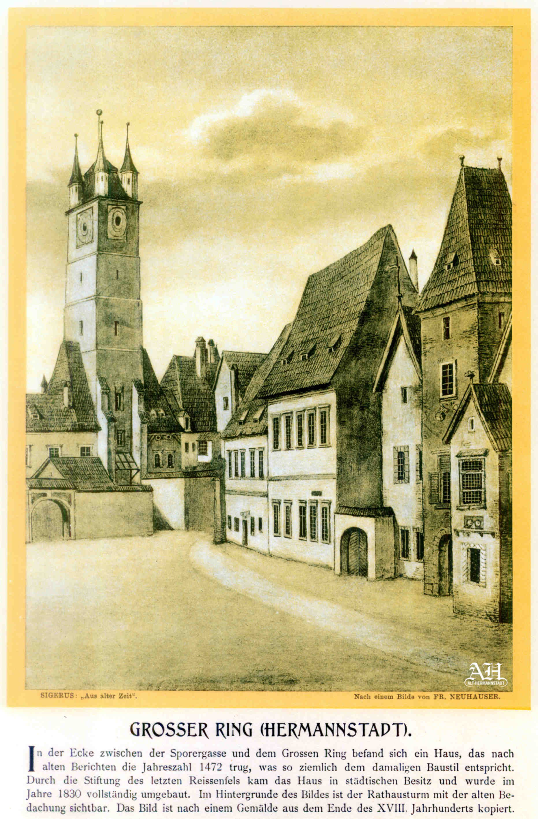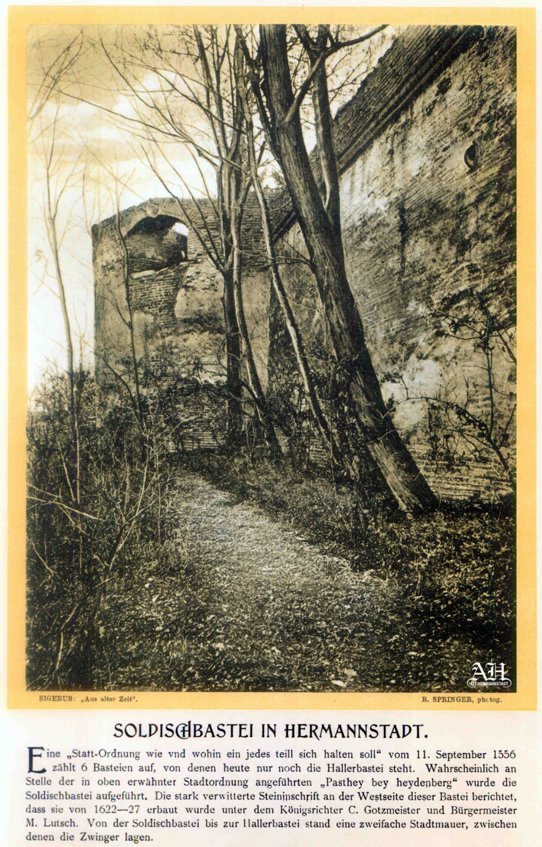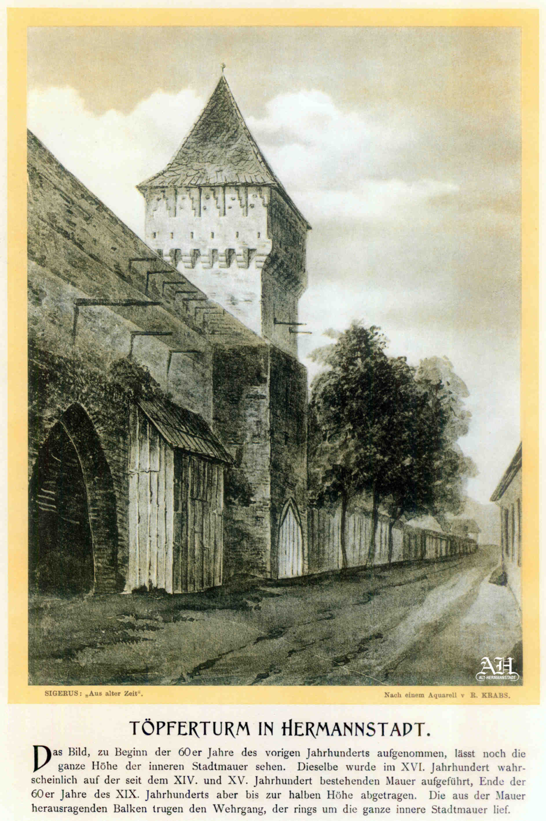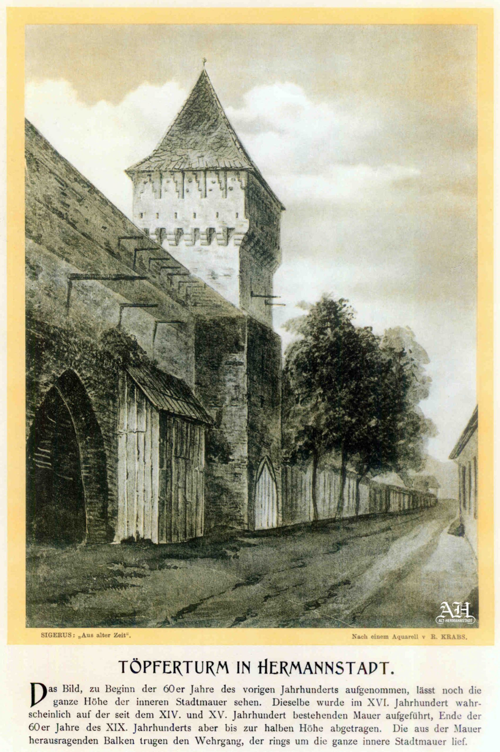 Albumul Siebenbürgisch-Sächsische Burgen und Kirchenkastelle // Cetăți și Biserici fortificate săsești din Ardeal a fost editat de Emil Sigerus 1900 și tipărit la Institulul tipografic sibian „Kunstanstalt Jos. Drotleff, Hermannstadt“ / proprietar Peter Drotleff.