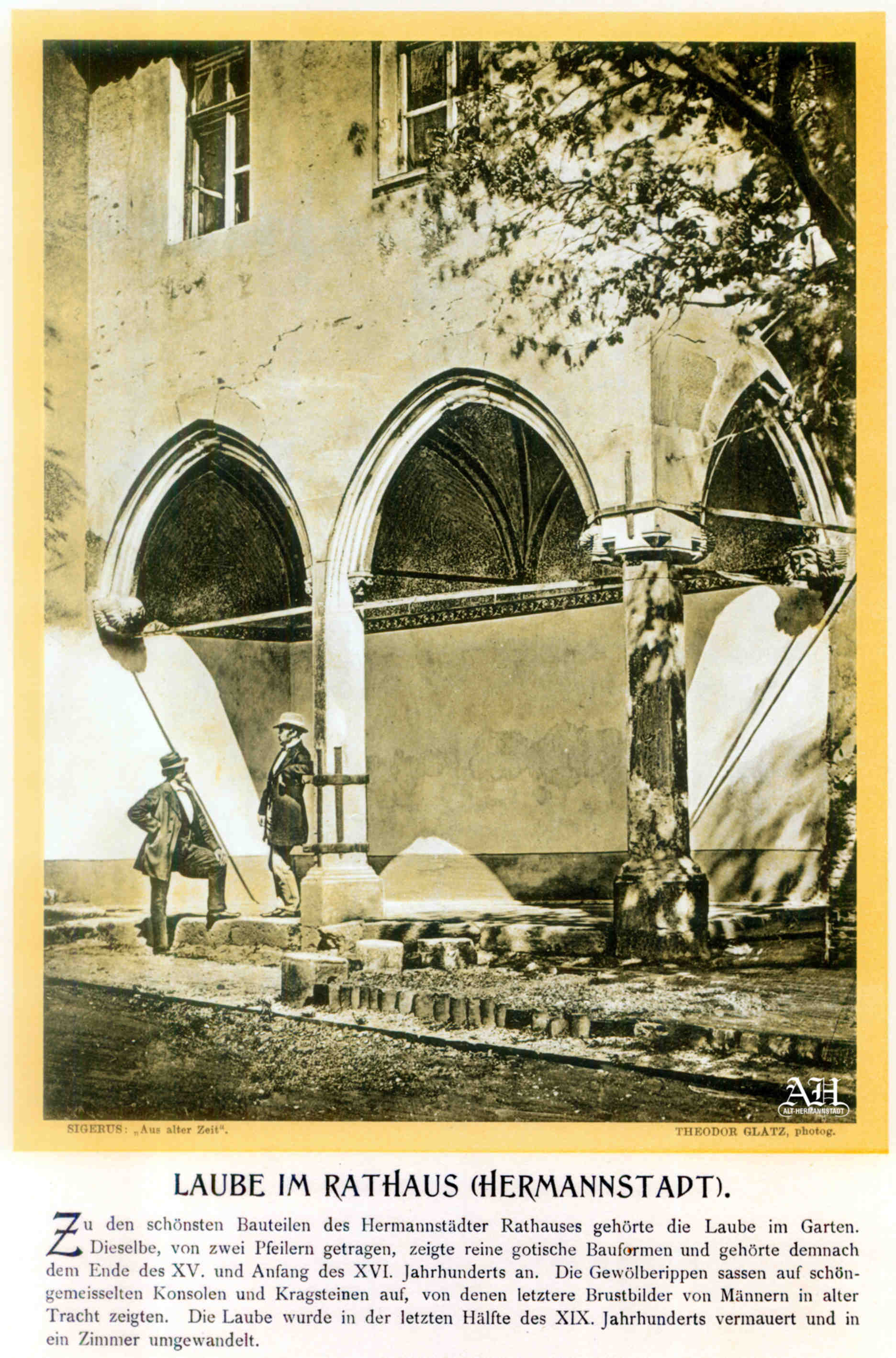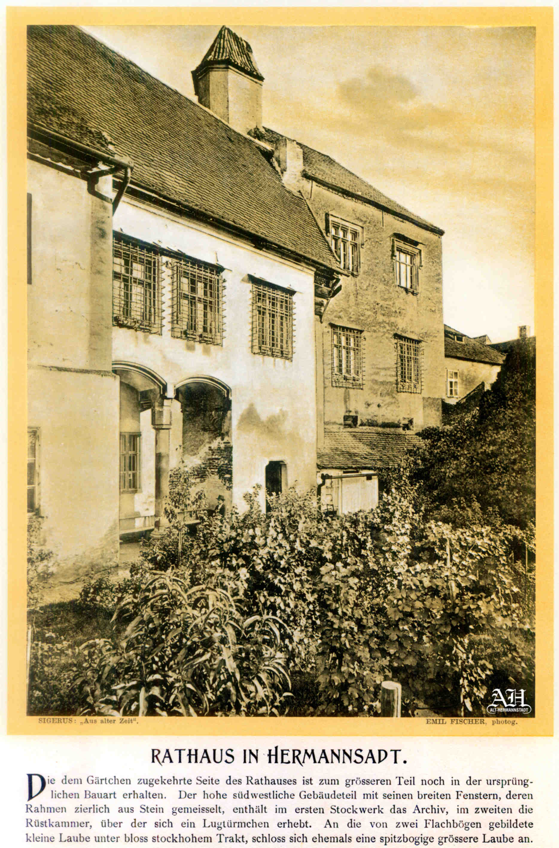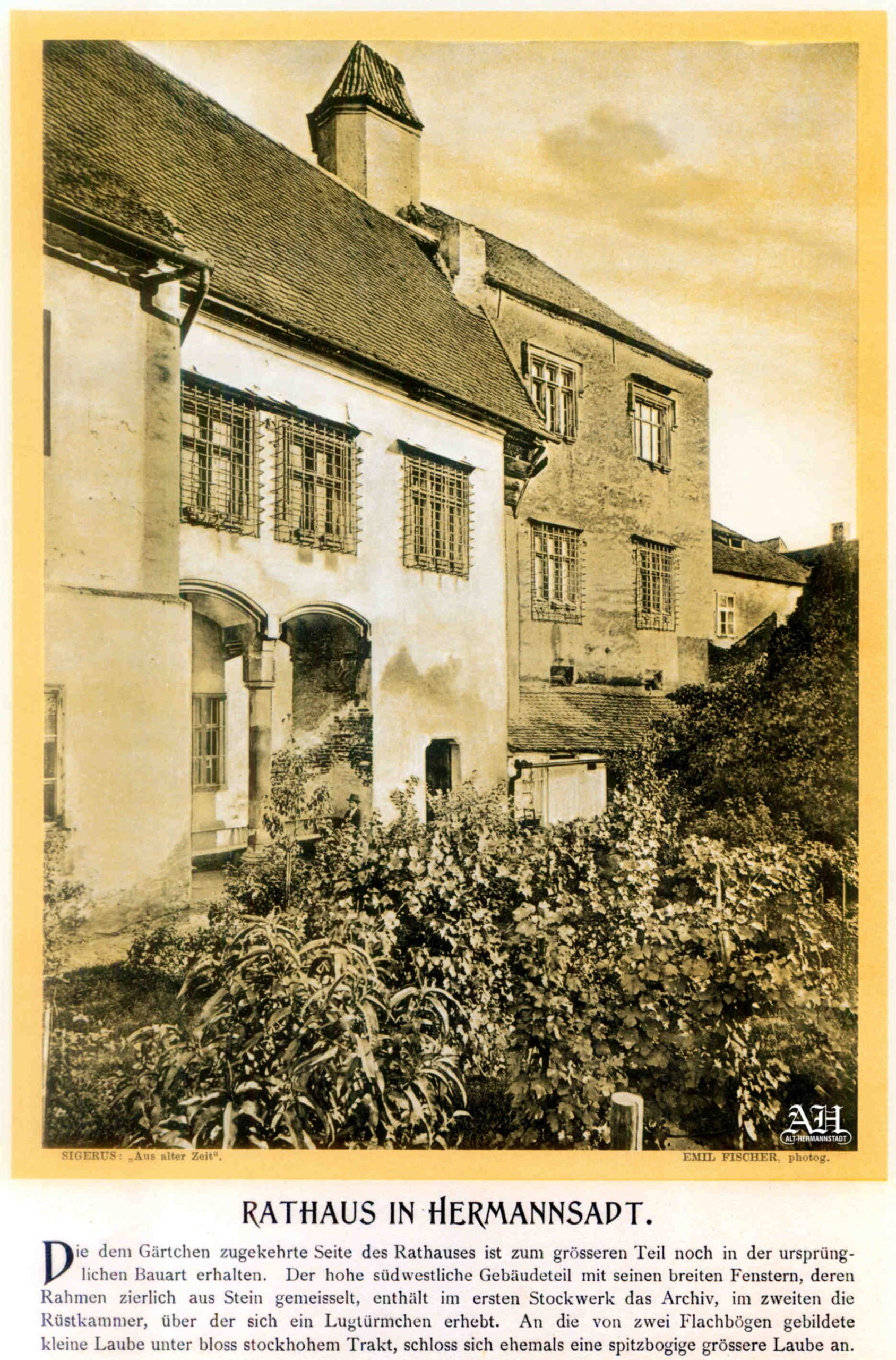„Was der Gemeinsinn der Väter geschaffen, darf die Selbstsucht der Enkel nicht zerstören. ~ Hermannstadt, im Februar 1901 – Emil Sigerus Kustos des siebenbürgischen Karpathenmuseums.”