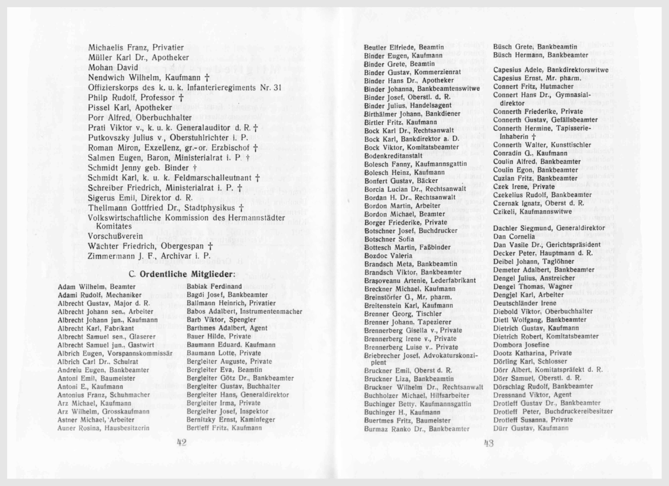 Da das Tätigkeitsgebiet des Vereins sich allmählich sehr ausgedehnt hat, so werden seine einzelnen Teile den einzelnen Ausschußmitgliedern zur besonderen Beobachtung und Obsorge angewiesen, wodurch eine ständige, genauere Betreuung möglich erscheint. – Die Mitgliedsbeiträge, die mit 20 Lei pro Jahr festgesetzt waren, sollen wohl auch in dieser geringen Höhe bleiben können, es wird den einzelnen Mitgliedern aber anheimgestellt, ihre Beiträge aus freien Stücken selbst höher zu stellen, welcher Einladung eine erhebliche Anzahl der Mitglieder entspricht.