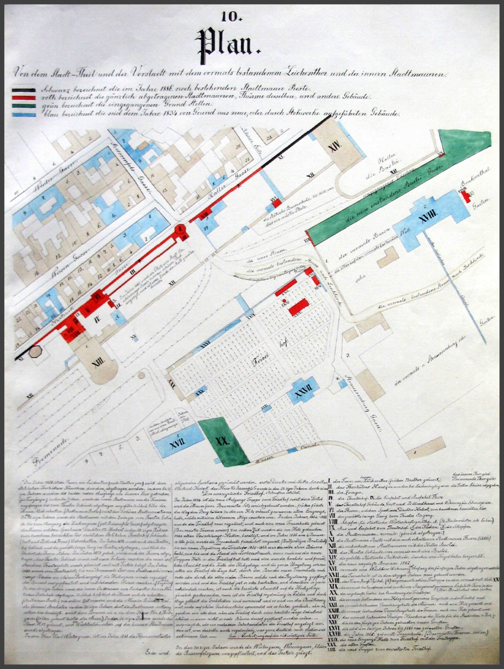 II. in den 60ziger Jahren ist der neue Militair Friedhof angelegt worden, und der alte M. Friedhof am Ausgang der Feldgasse aufgelassen worden, (siehe Plan Sagthor Vorstadt)