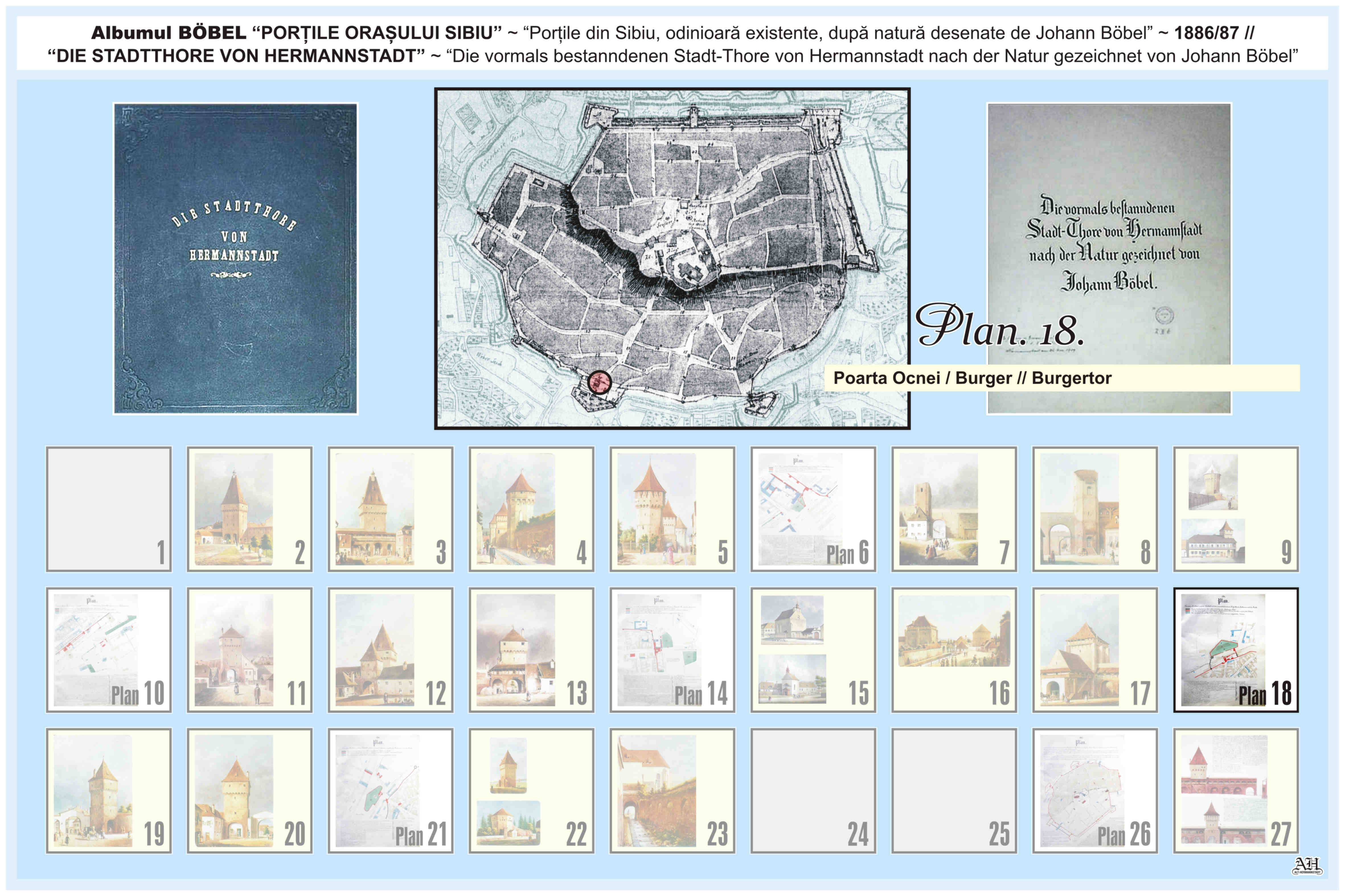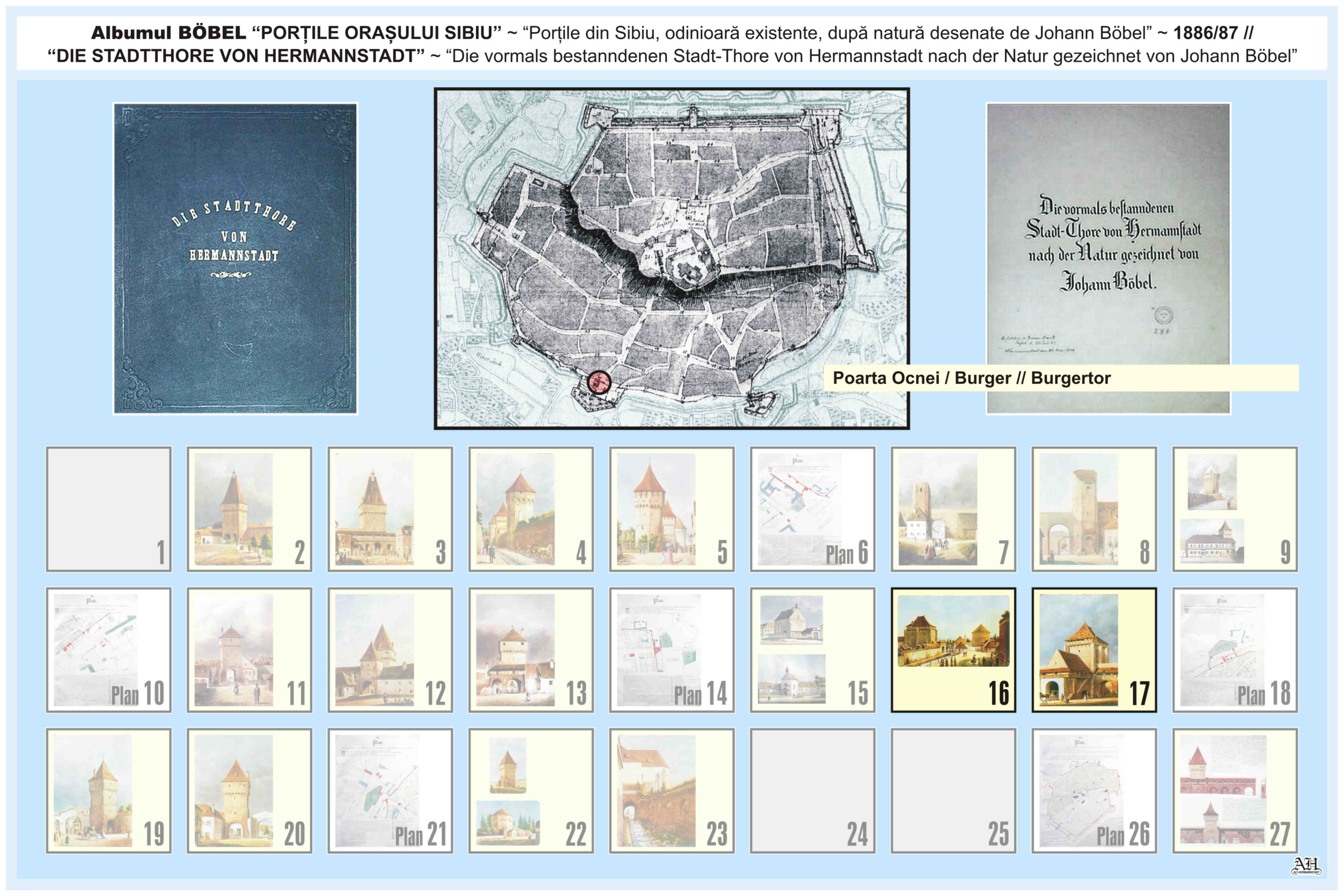 O descriere asemănătoare despre Poartă Burger/ Ocnei // Burgertor se regăseşte şi în album realizat de renumitul cronicar, cartograf și pictor amator Johann Böbel: „Die vormals bestanndenen Stadt-Thore von Hermannstadt nach der Natur gezeichnet” // „Porțile din Sibiu odinioară existente după natură desenate” ( traducere mot-a-mot „Porțile odinioară existente ale Sibiului după natură desenate” ). Albumul a fost descoperit după moartea artistului, survenită în luna aprilie 1887. Existența albumului este atestată și într-un articol apărut în Korrespondenzblatt des Vereins für Siebenbürgische Landeskunde din 27 august 1887.