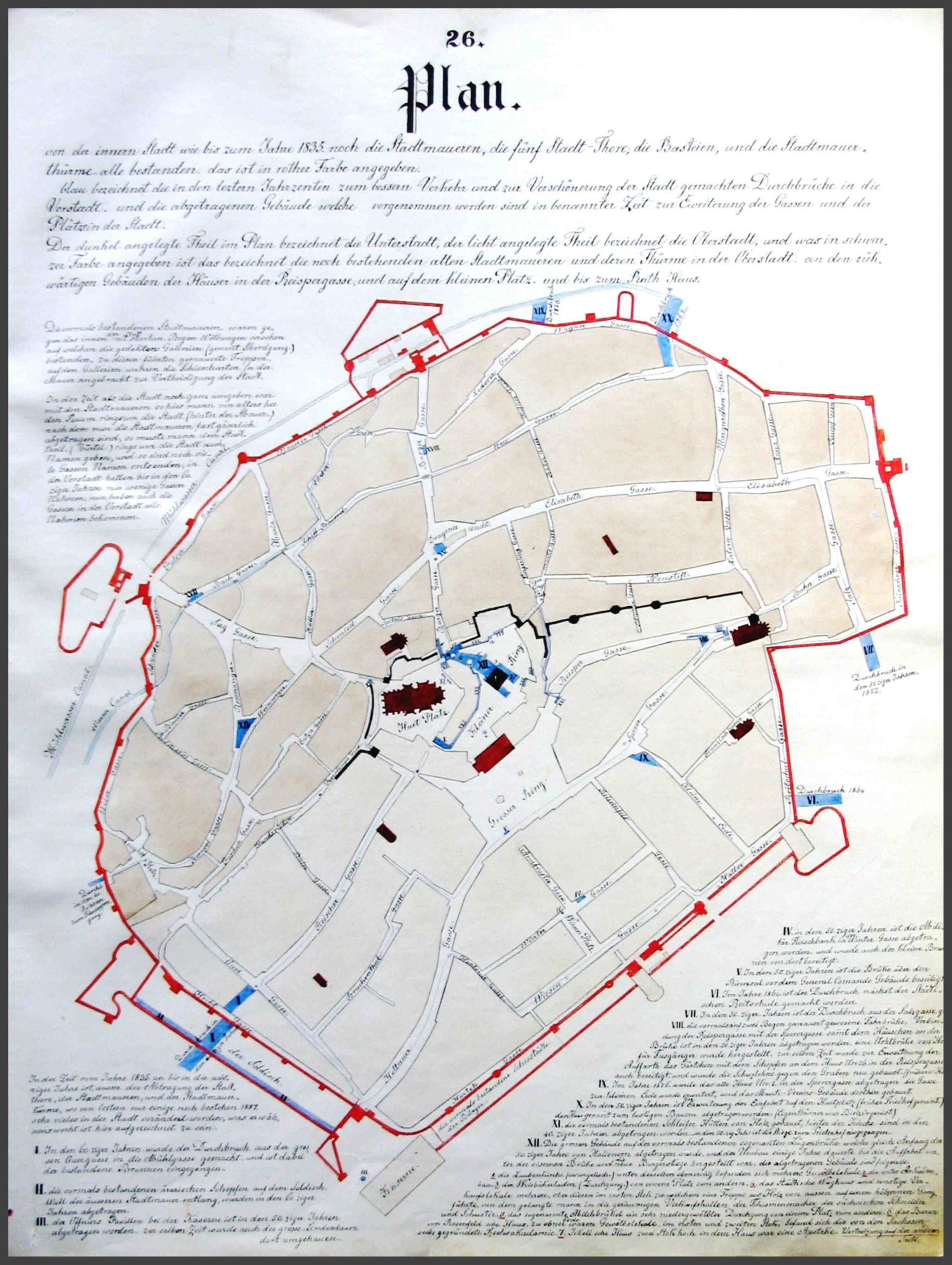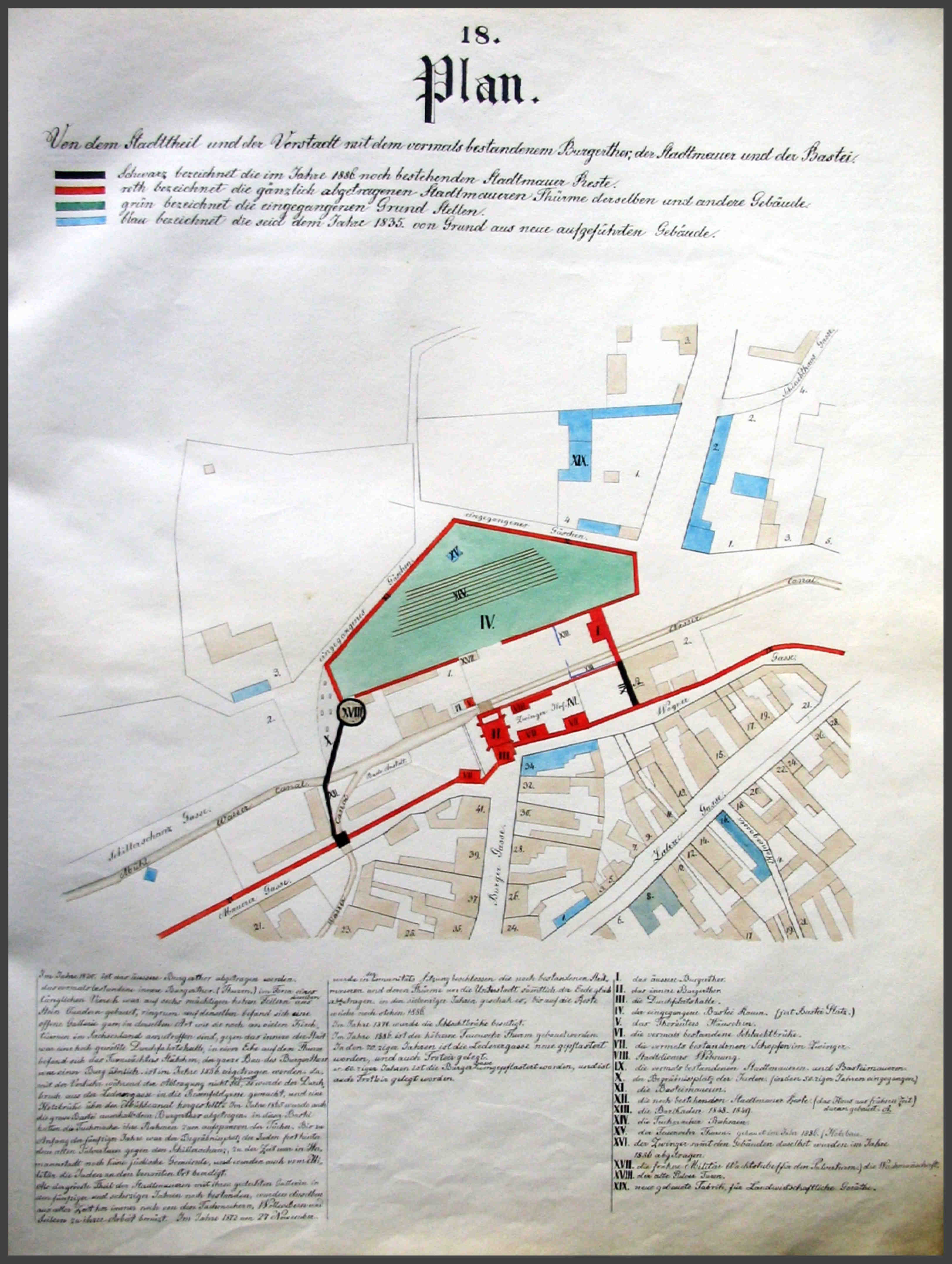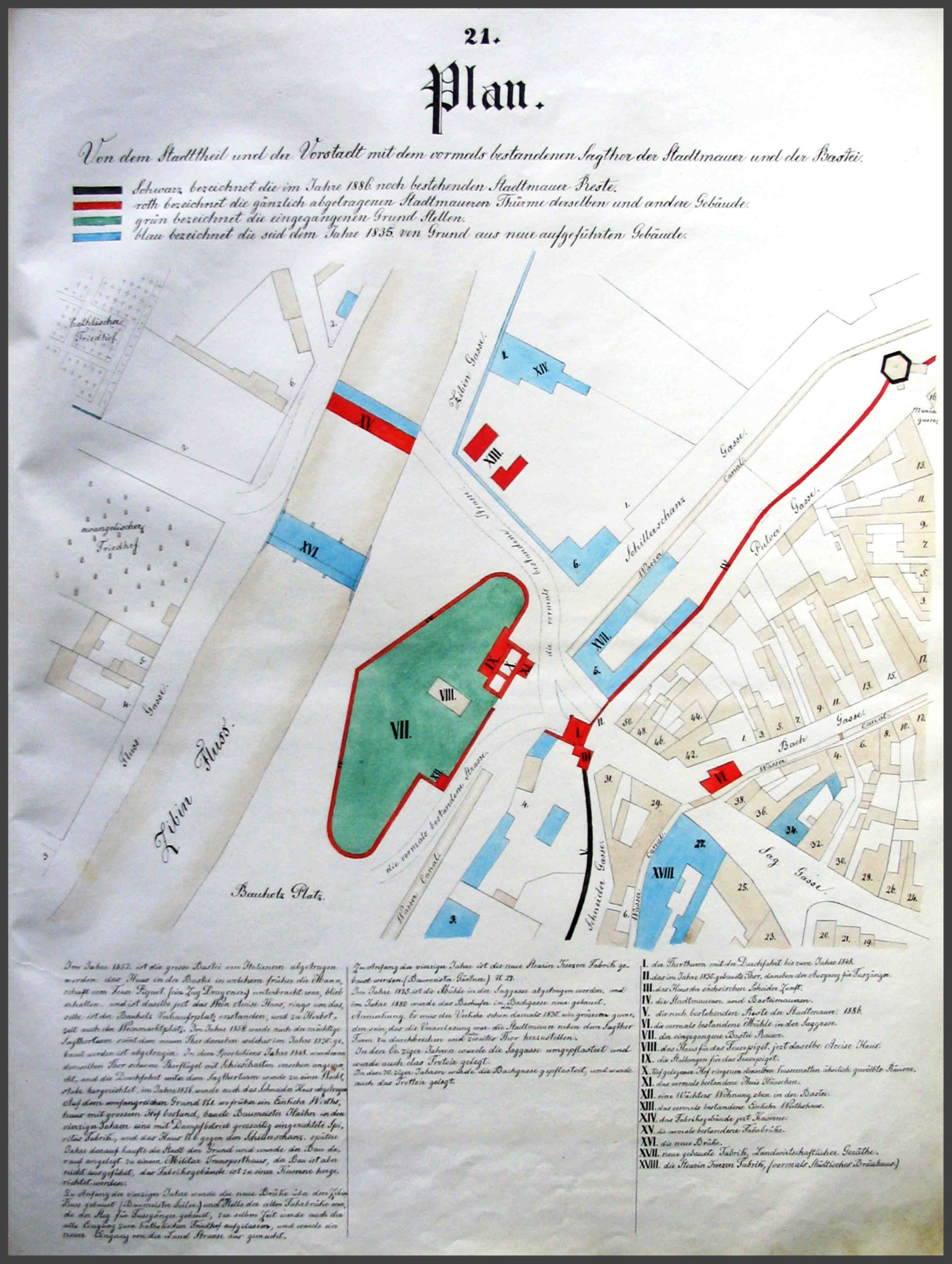 „Im Jahre 1871 am 27 November wurde in der comunitäts Sitzung beschlossen, die noch bestandenen Stadtmauer Reste der Unter Stadt sämmtlich der Erde gleich abzutragen. In den 70ziger Jahren geschah es auch, und wurde auch die kleine Bastei abgetragen, (siehe Plan Wagnergasse).“