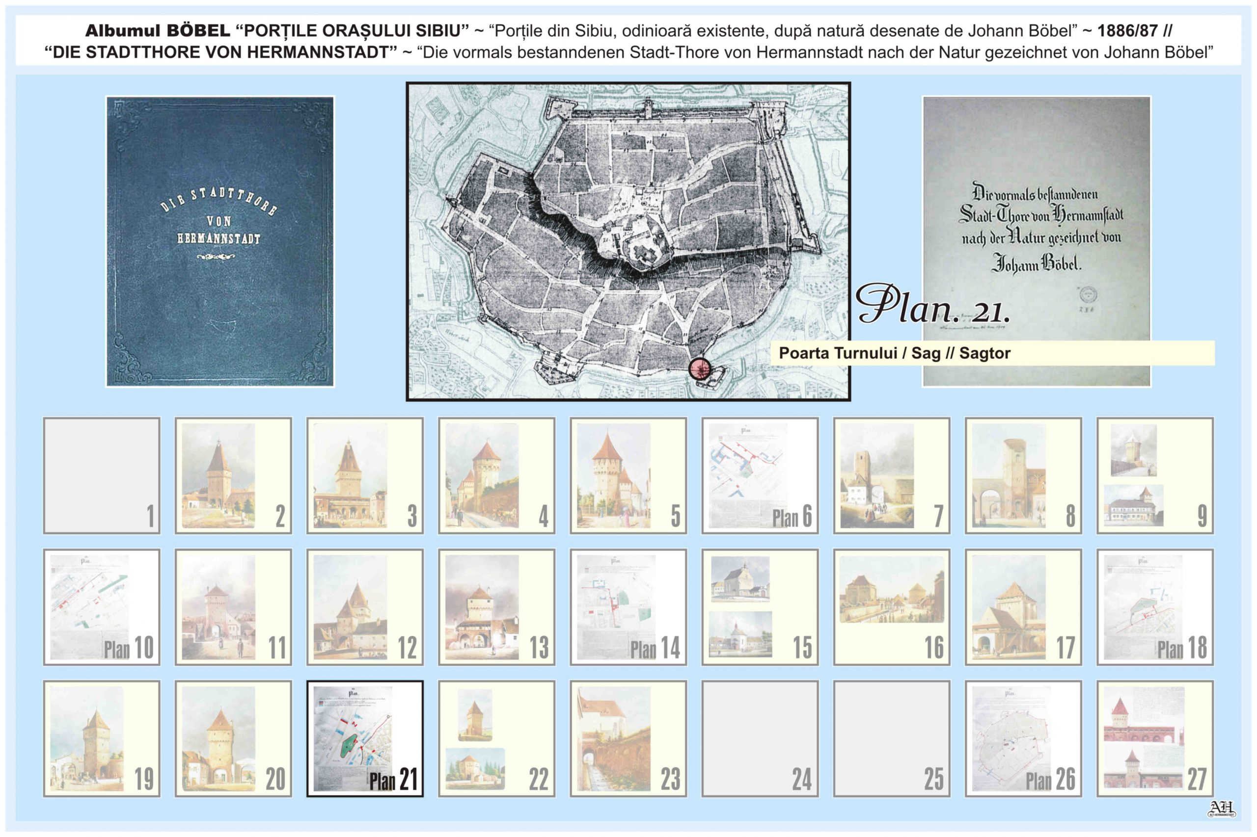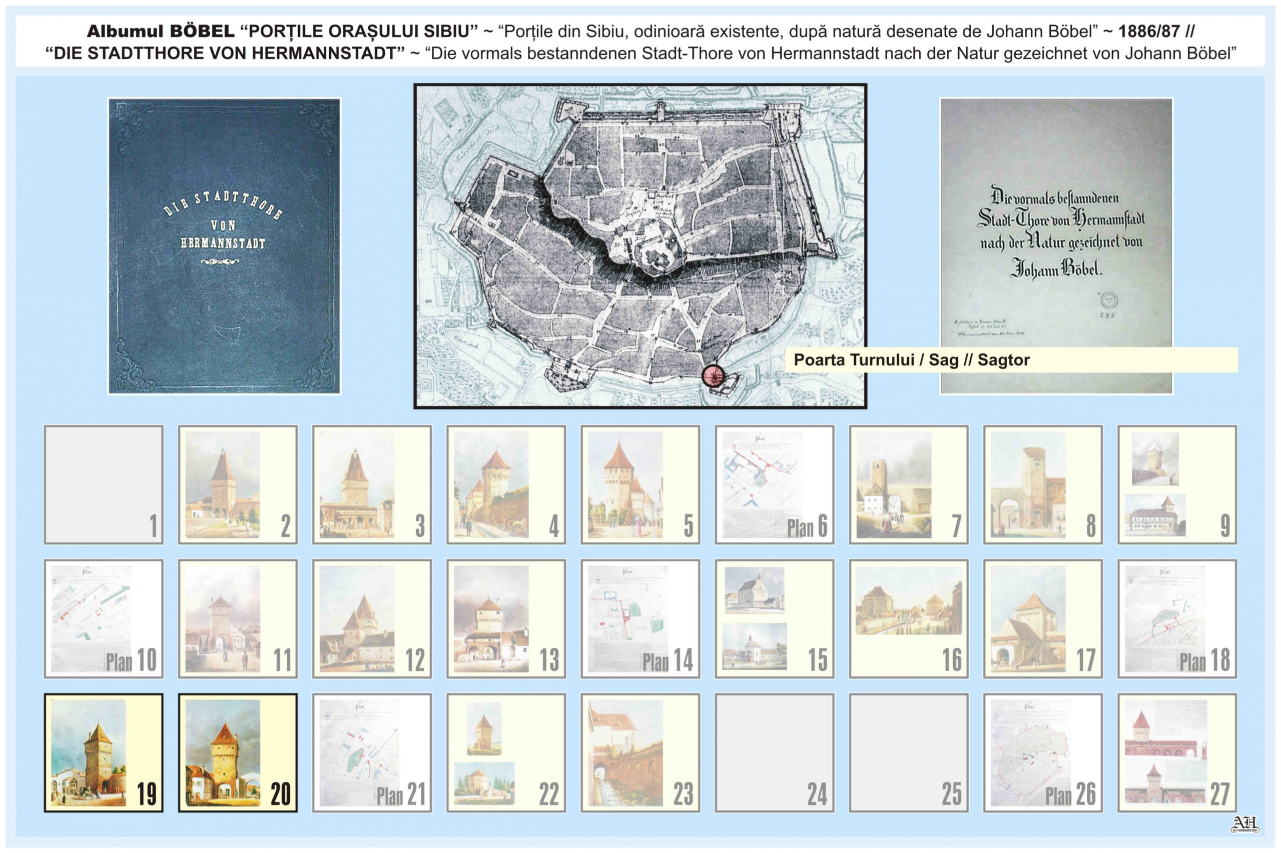 O descriere asemănătoare despre Poartă Sag/ Turnului // Sagtor se regăseşte şi în album realizat de renumitul cronicar, cartograf și pictor amator Johann Böbel: „Die vormals bestanndenen Stadt-Thore von Hermannstadt nach der Natur gezeichnet” // „Porțile din Sibiu odinioară existente după natură desenate” ( traducere mot-a-mot „Porțile odinioară existente ale Sibiului după natură desenate” ). Albumul a fost descoperit după moartea artistului, survenită în luna aprilie 1887. Existența albumului este atestată și într-un articol apărut în Korrespondenzblatt des Vereins für Siebenbürgische Landeskunde din 27 august 1887.