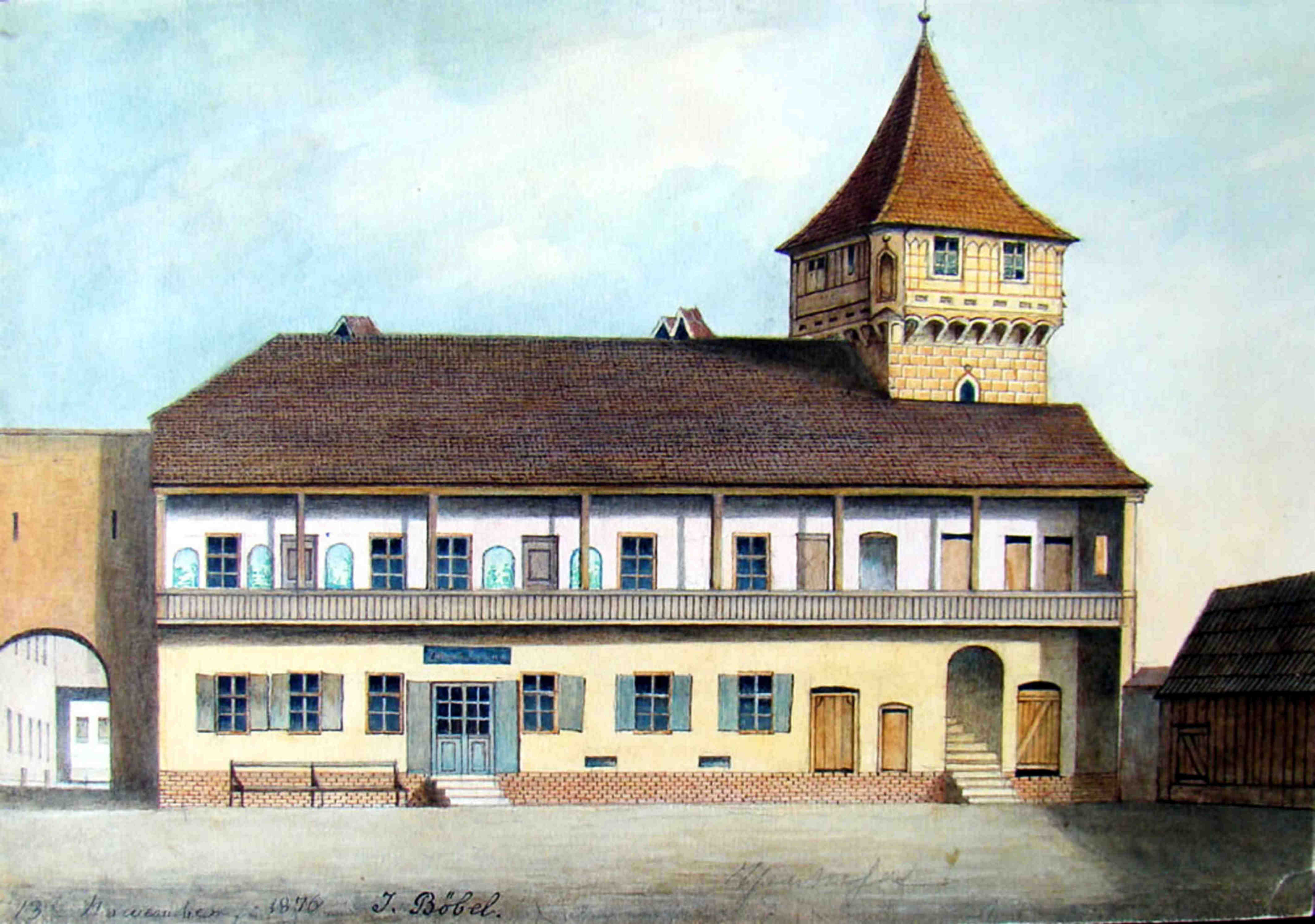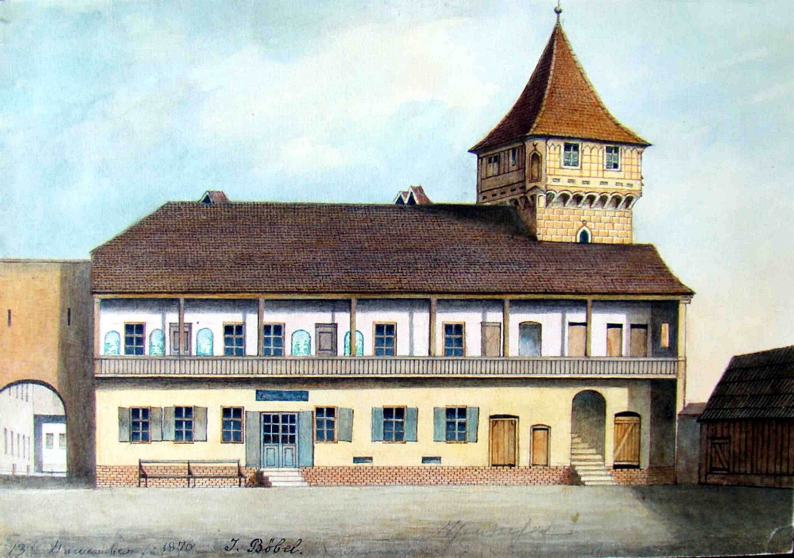 „(† Johann Böbel) In der Reispergasse steht zwischen Wohngebäuden von meist modernem Aeußern ein kleines Haus mit altertümlichem Gibel. Es ist gleichsam ein Denkmal aus früheren Jahrhunderten und gewiß jedem unter dem Namen „Zum Kometen“ bekannt, welche Bezeichnung es von einem Erbstück des Eigentümers, von einem Tisch erhalten, dessen blaue Glasplatte einen goldenen Kometen bedeckt. Auf diesem Tisch liegt ein wertvolles Album, welches in Wasserfarben fein ausgeführte Abbildungen sämtlicher Stadttore, Befestigungstürme und Mauern Hermannstadts erhält – wie sie in vergangenen Zeiten dem feindlichen Angriff trotz geboten und zum Teil heute noch der Neuerungs- und Nivellierungssucht zum Angriffe dienten. Viel Interessantes und Wichtiges für den Kunsthistoriker geradezu Unentbehrliches wäre für immer verloren gegangen, wenn diese – unbegreiflicher Weise – fast einzigen Bilder nicht mit einem wahren Bienenfleiß von einem treuen Bürger Hermannstadts während eines vollen Menschenalters angefertigt worden wären. Es ist dies der bürgerliche Weißbäckermeister JOHANN BÖBEL, dessen Leiche gestern unter allgemeiner Trauergeleitung aus dem erwähnten Hause zu Grabe getragen wurde…“ (textul original)