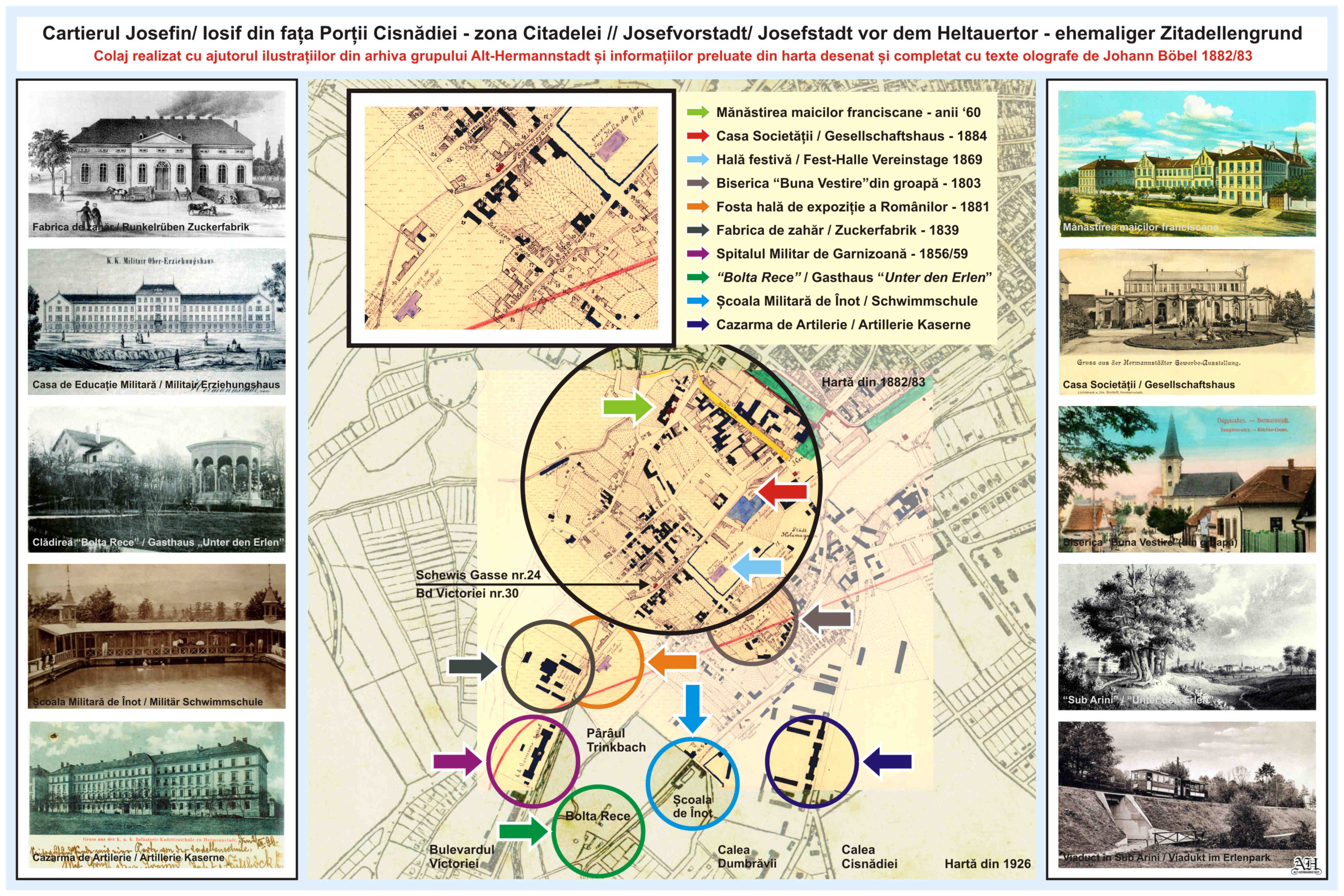 (Suburbia Cartierul Josefin – Text original din harta lui Böbel 1882/83)(sursa fotografii: „Alt-Hermannstadt”)
