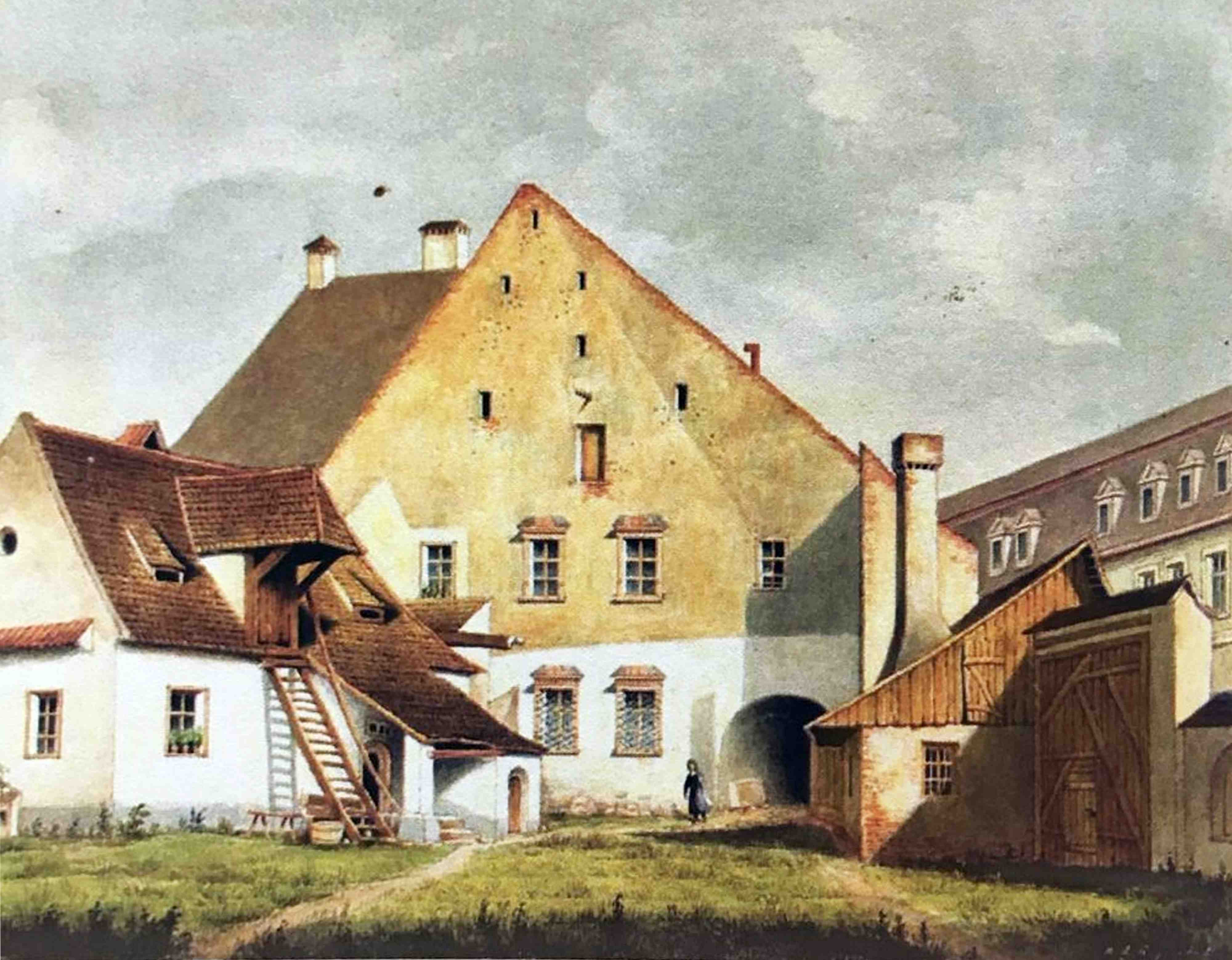 Există altă acuarelă realizată de același Johann Böbel, în care apare Casa Bedeus văzută dinspre curtea imobilului.