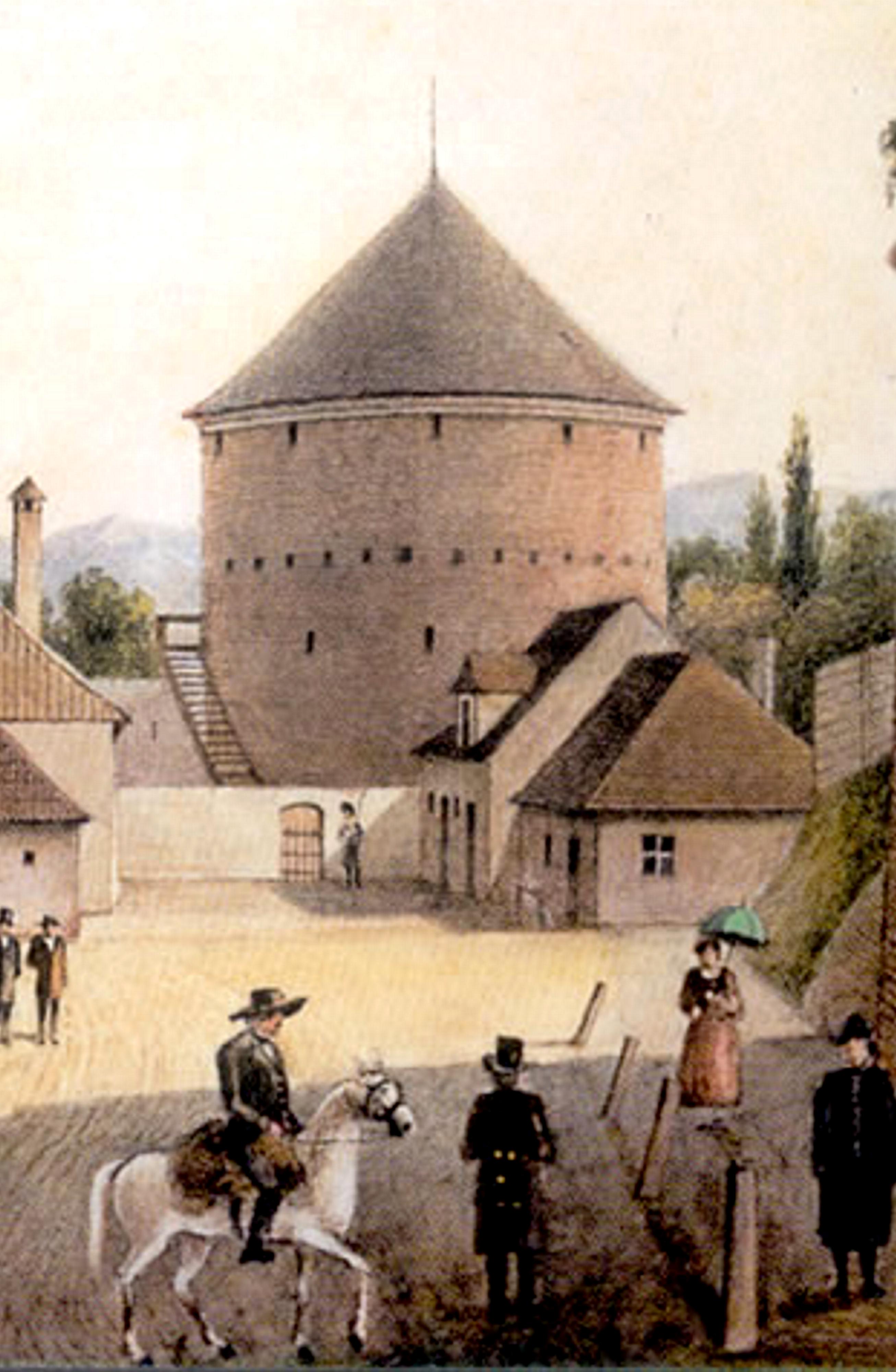 3. Der grosse Thurm mit dem Theil Stadt Mauer an welchem noch ärarische Magazine bestanden, sammt der Thor Einfahrt in den Soldisch blieb erhalten. In den 60ziger Jahren wurde auch dieser Theil Stadt-Mauer mit den Mi. Magazinen daran sammt der Thoreinfahrt in den Soldisch abgetragen und blieb nur der grosse Thurm noch stehen, welcher erhalten hätte sollen bleiben. Er war der Stadt keine Unzierde und stand nicht im Weg.