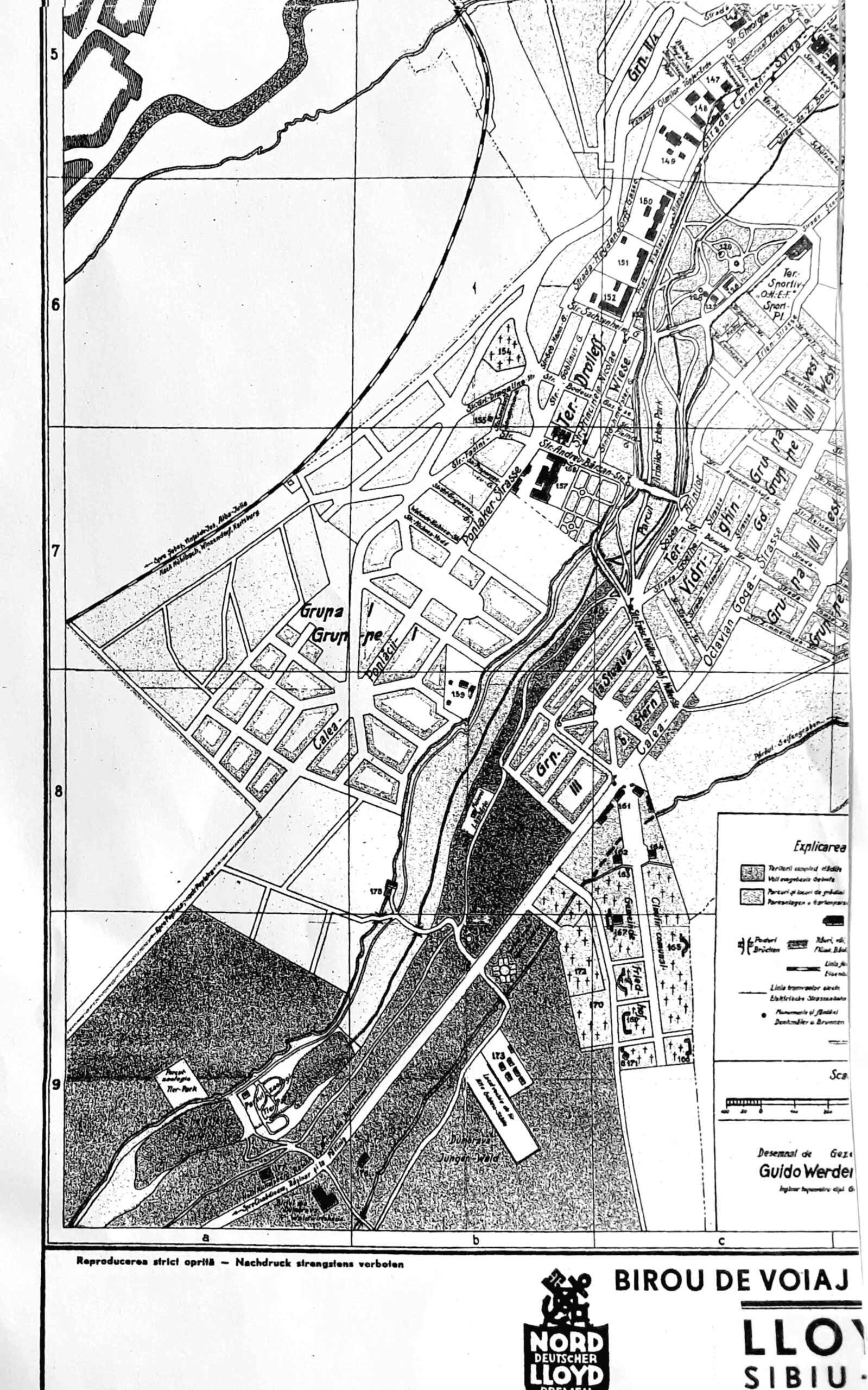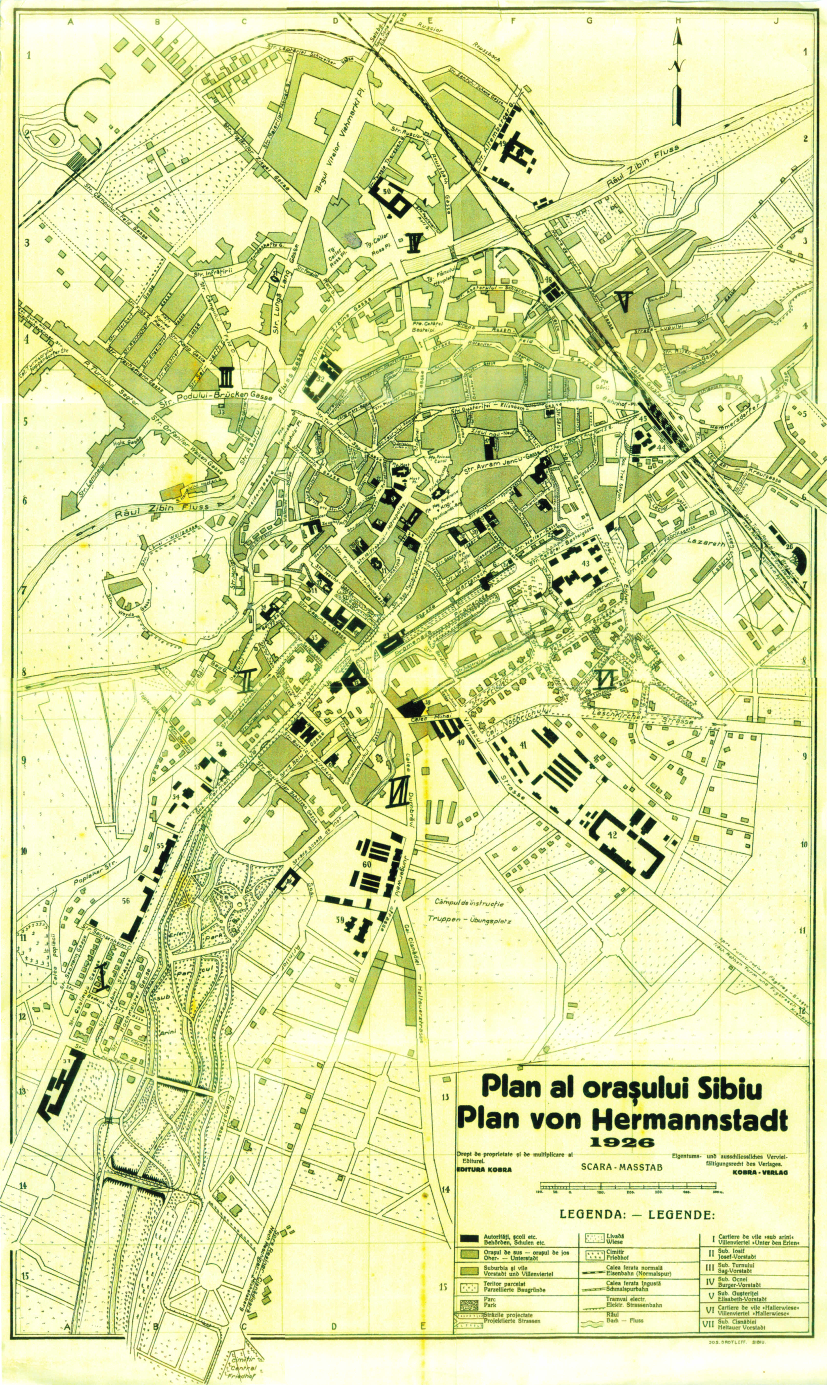 Noul Plan al Municipiului Sibiu din 1934 a fost tipărit la tipografia sibiana Krafft und Drotleff Sibiu – Hermannstadt.