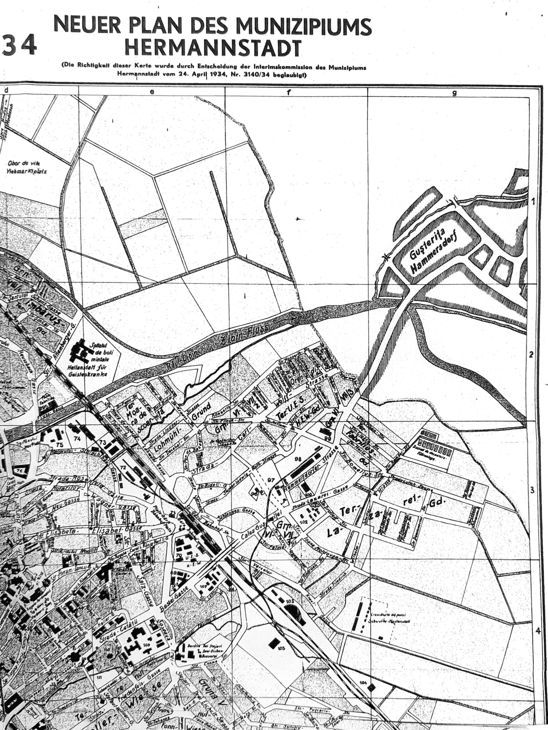 „Neuer Plan des Munizipiums Hermannstadt 1934“ // „Noul Plan al Municipiului Sibiu 1934”