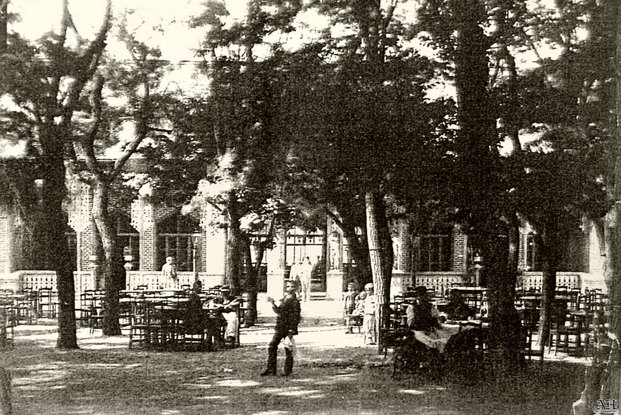 Această fotografie a fost realizate la sfârșitul secolului al XIX-lea în grădina restaurantului de vară „Hermannsgarten” ( Grădina lui Hermann ), fosta grădină „Volksgarten” ( Grădina populară ), strada Andrei Șaguna nr.5 ( vechea adresă: Mühlgasse Nr.9 ) în Sibiu.