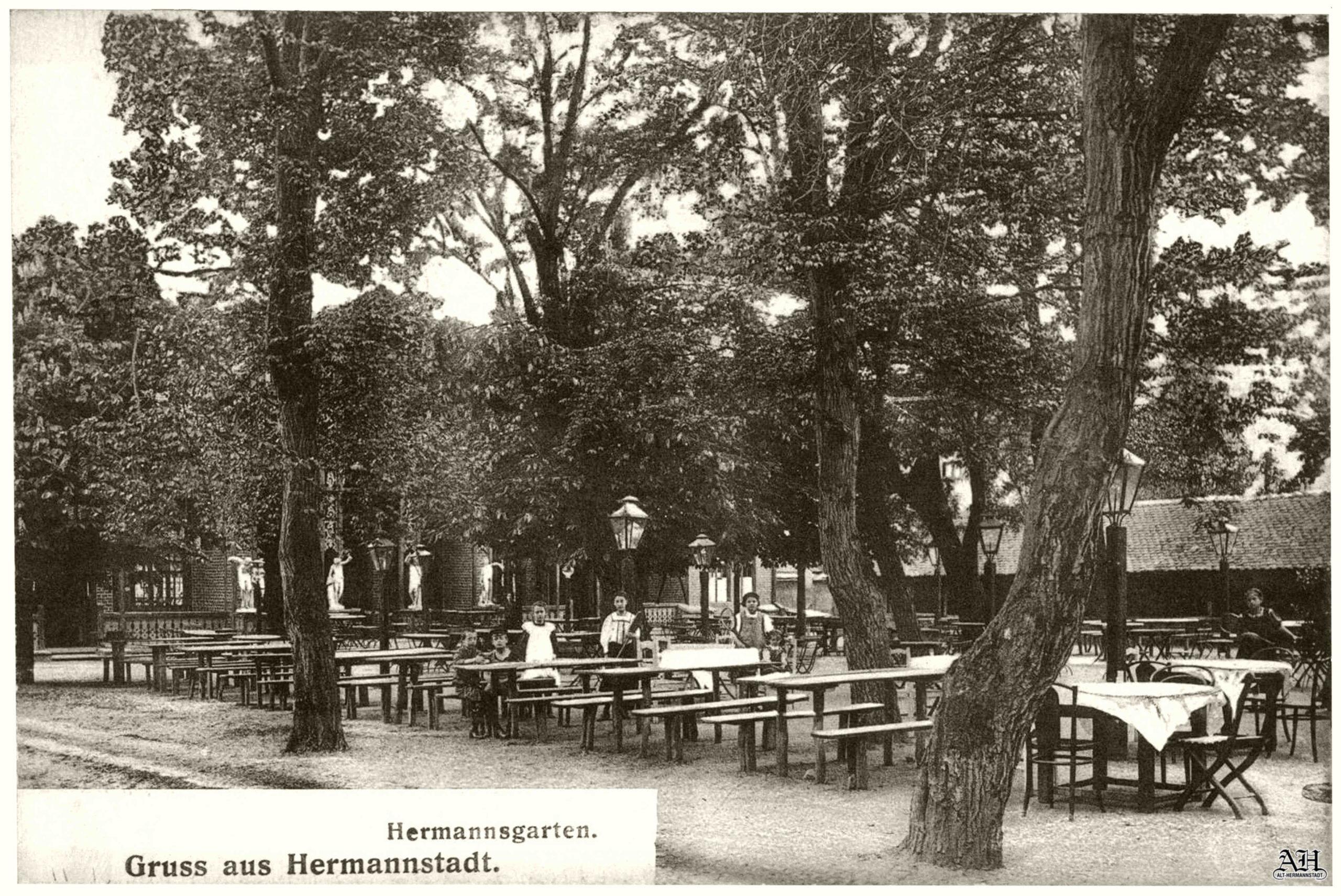 Fotografia acestei cărți poștale a fost realizate la sfârșitul secolului al XIX-lea în grădina restaurantului de vară „Hermannsgarten” ( Grădina lui Hermann ), fosta grădină „Volksgarten” ( Grădina populară ), strada Andrei Șaguna nr.5 ( vechea adresă: Mühlgasse Nr.9 ) în Sibiu.