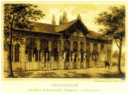 Această litografie deosebit de frumoasă, intitulată, „PRACHTSALON des Baron Brukenthal’schen Volksgartens in Hermannstadt”, a fost tipărită la Institutul litografic Winckelmann & Söhne (H.Porsch) din Berlin.