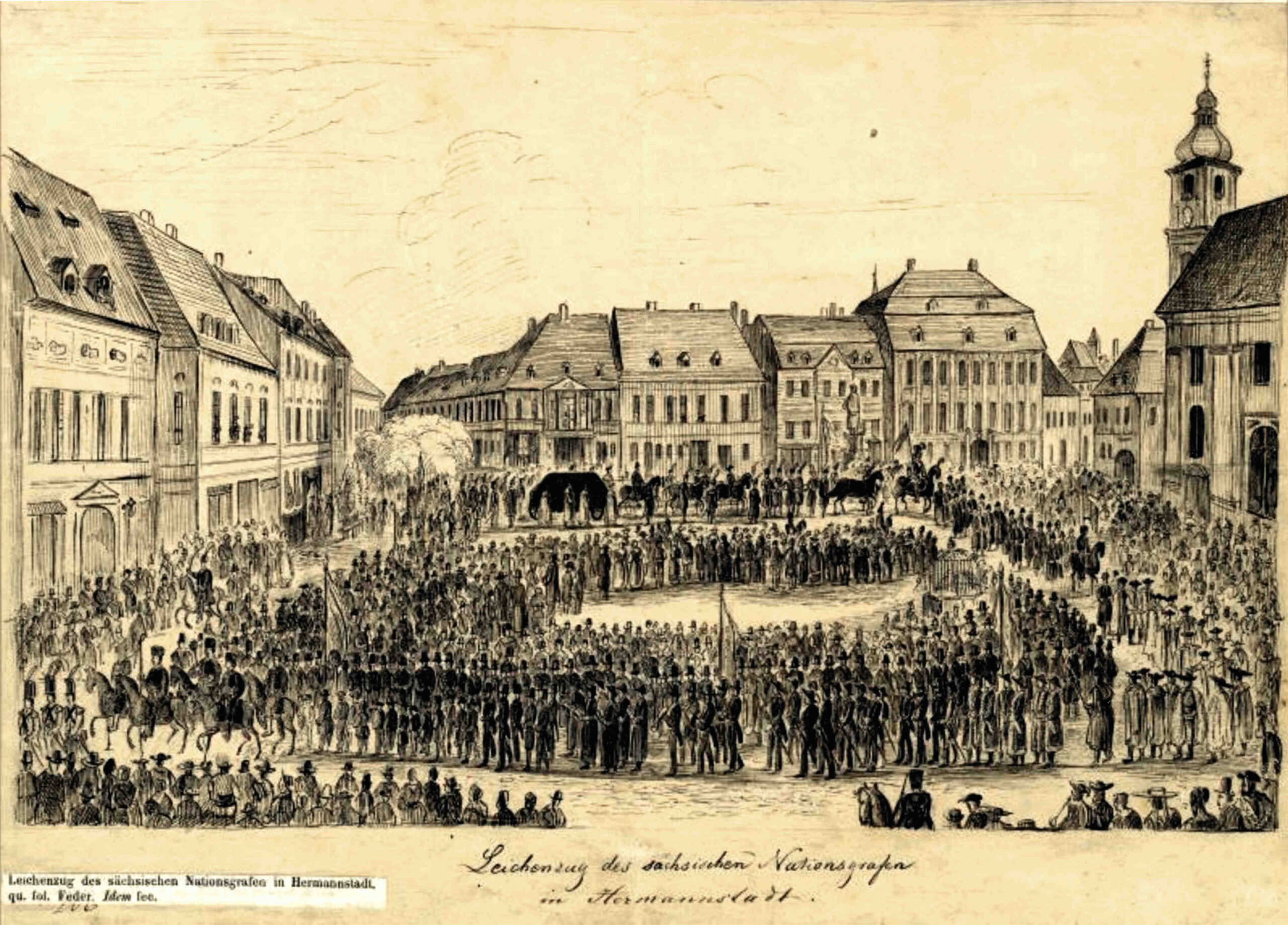 „Der Leichenzug des sächsischen Nationsgrafen Johann Wachsmann“ // „Cortegiul funeral al comitelui sas Johann Wachsmann“ ~ 1845