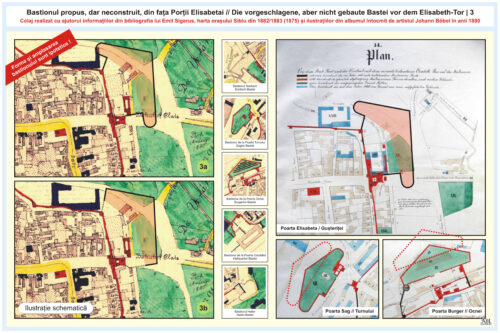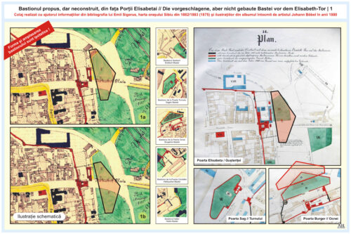 „Die vorgeschlagene, aber nicht gebaute Bastei vor dem Elisabethtor” // „Bastionul propus, dar neconstruit, din fața Porții Elisabeta/ Gușteriței”