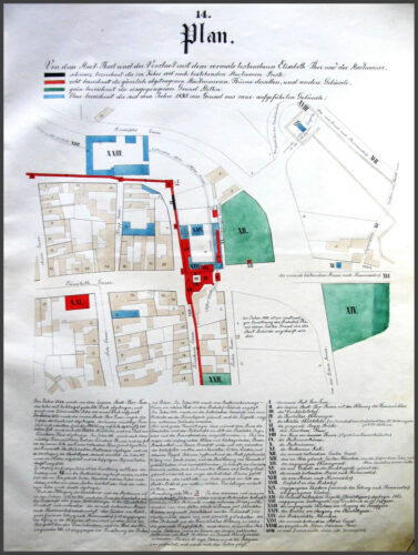 Această acuarelă a fost realizată de litograful librar, Friedrich August Robert Krabs, la mijlocul secolului al XIX-lea, mai precis între 1855 și 1865 deoarece lipsește micul turn interior, demolat în 1855, iar marele turn exterior din ilustrație a fost demolat în 1865. Bastionul planificat ar fi fost probabil construit pe terenul viran din fața Porții Elisabeta, vizibil în această acuarelă.