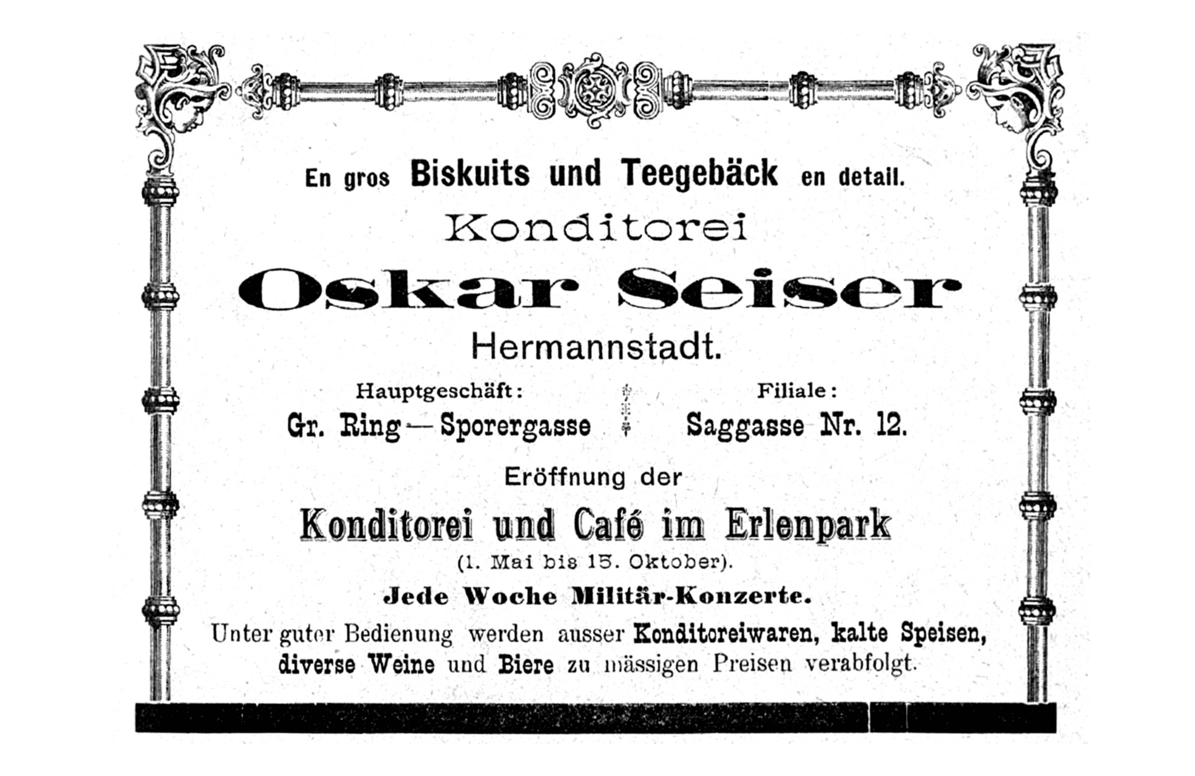Reclame comerciale „Cofetăria Oskar Seiser” – 1904 & 1908