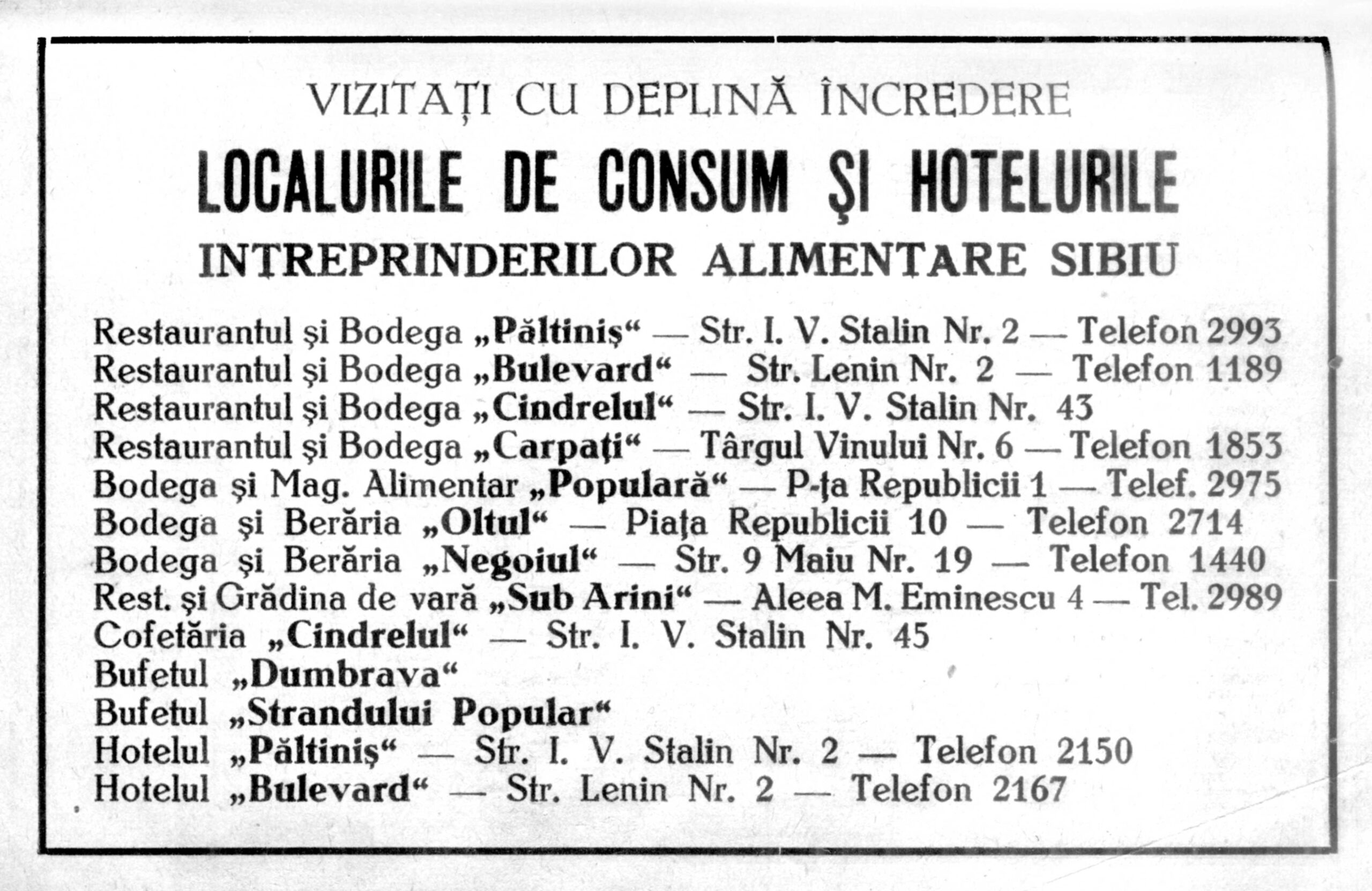 „Noua nomenclatură a străzilor SIBIU” – 1949