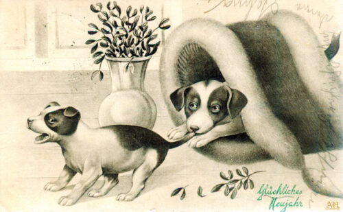 Ilustrația face parte dintr-o colecție de cărți poștale și felicitări moștenită de la dna Paula Ballmann ( Paulatante ), pe care am cunoscut-o personal. Paulatante, domiciliată în Sibiu pe strada Elisabethgasse ( din 1947, 9 Mai ) nr.6/I, primise colecția de la prietena ei, Grete Pankiewicz. Cartea poștală se află în colecția privată Wolff.