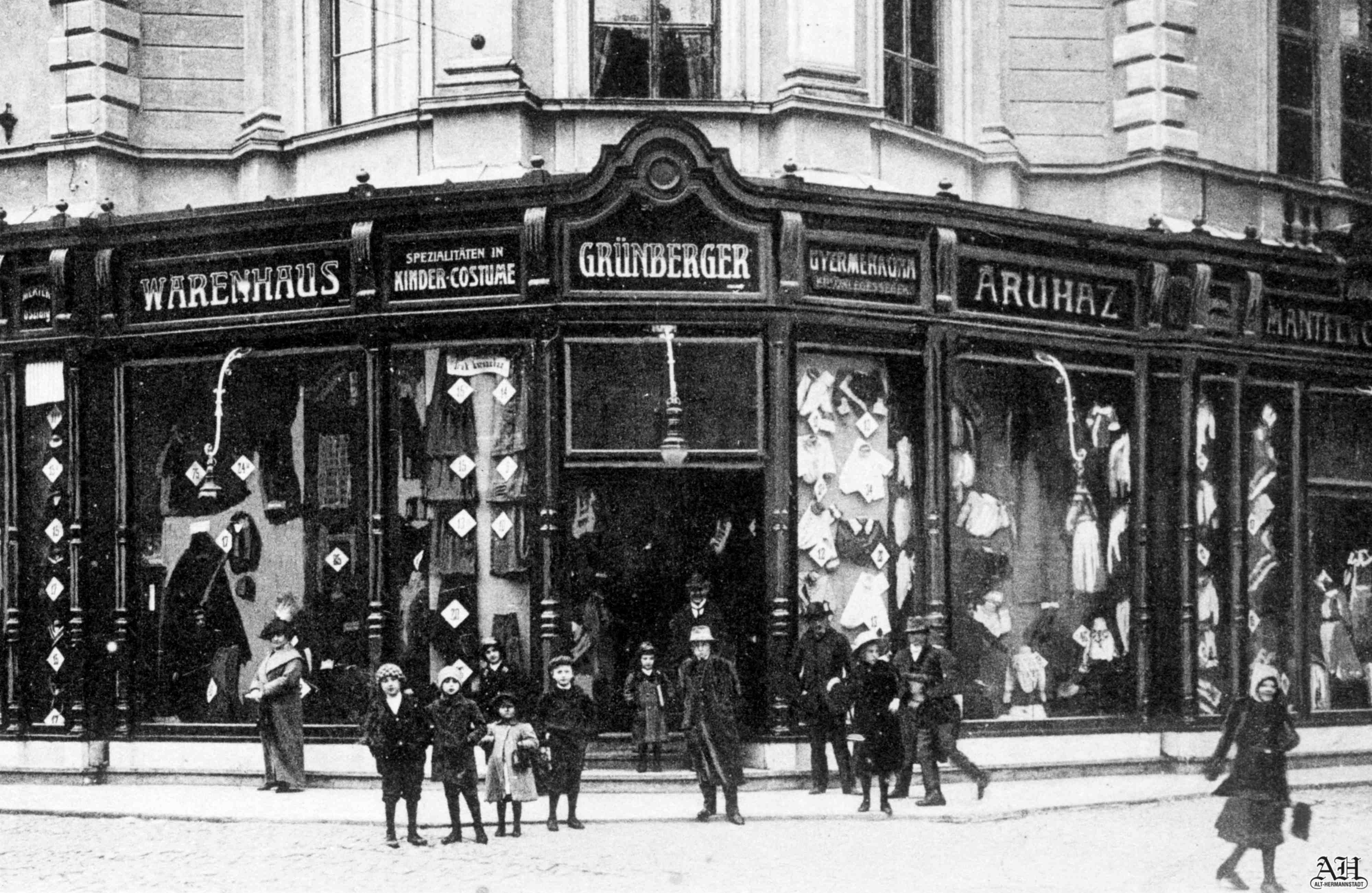 pentru magazinul de confecții ți îmbrăcăminte pentru adulți și copii, „Grünberger”, din Sibiu.