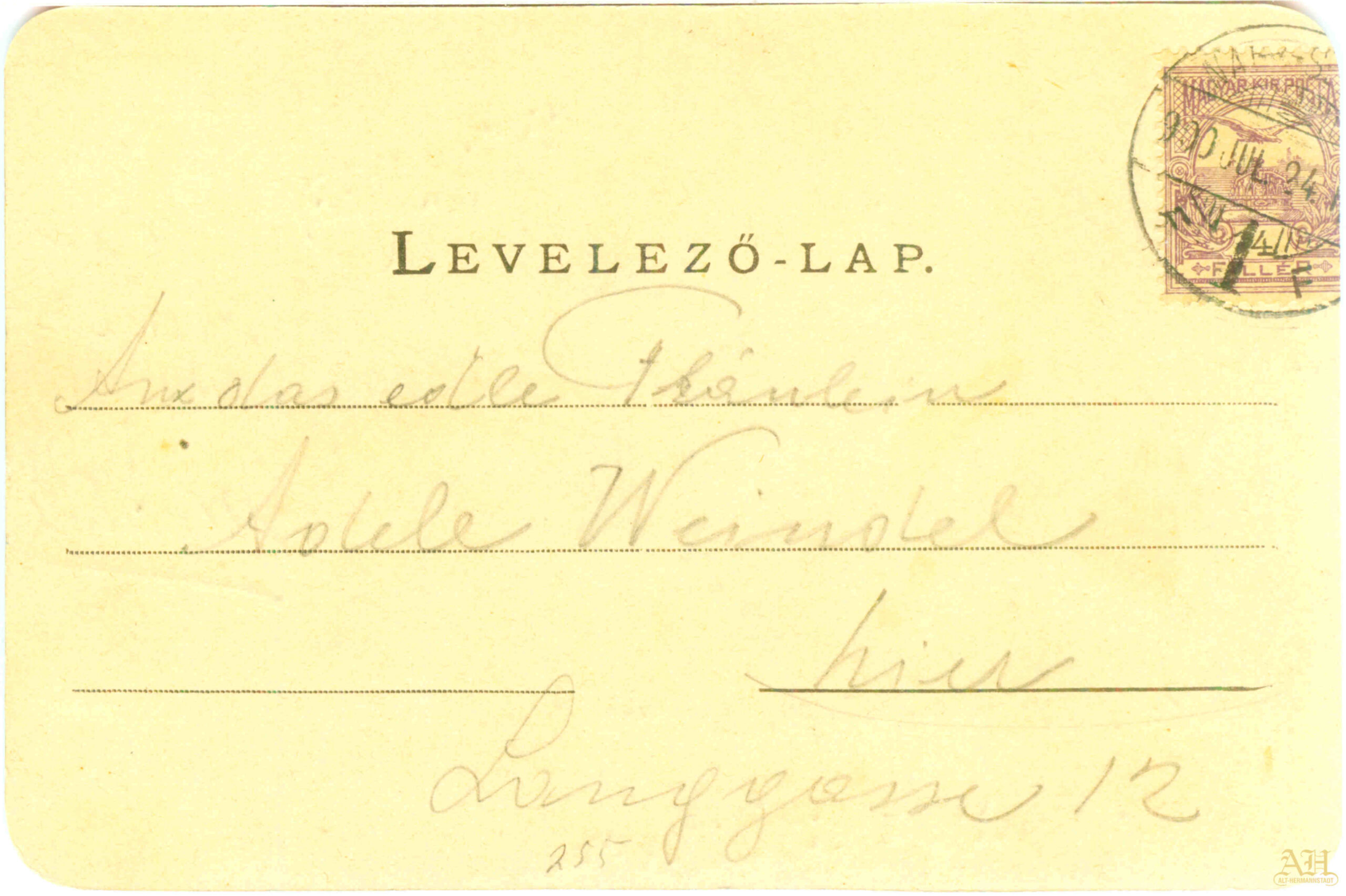 Cartea poștală a fost adresată domnișoarei Adele Weindel, domiciliată în Sibiu pe strada Langgasse 12 = str. Lungă (astăzi str. 11 Iunie), și a circulat local în data de 24 iulie 1900. Carte poștală din colecția personală.