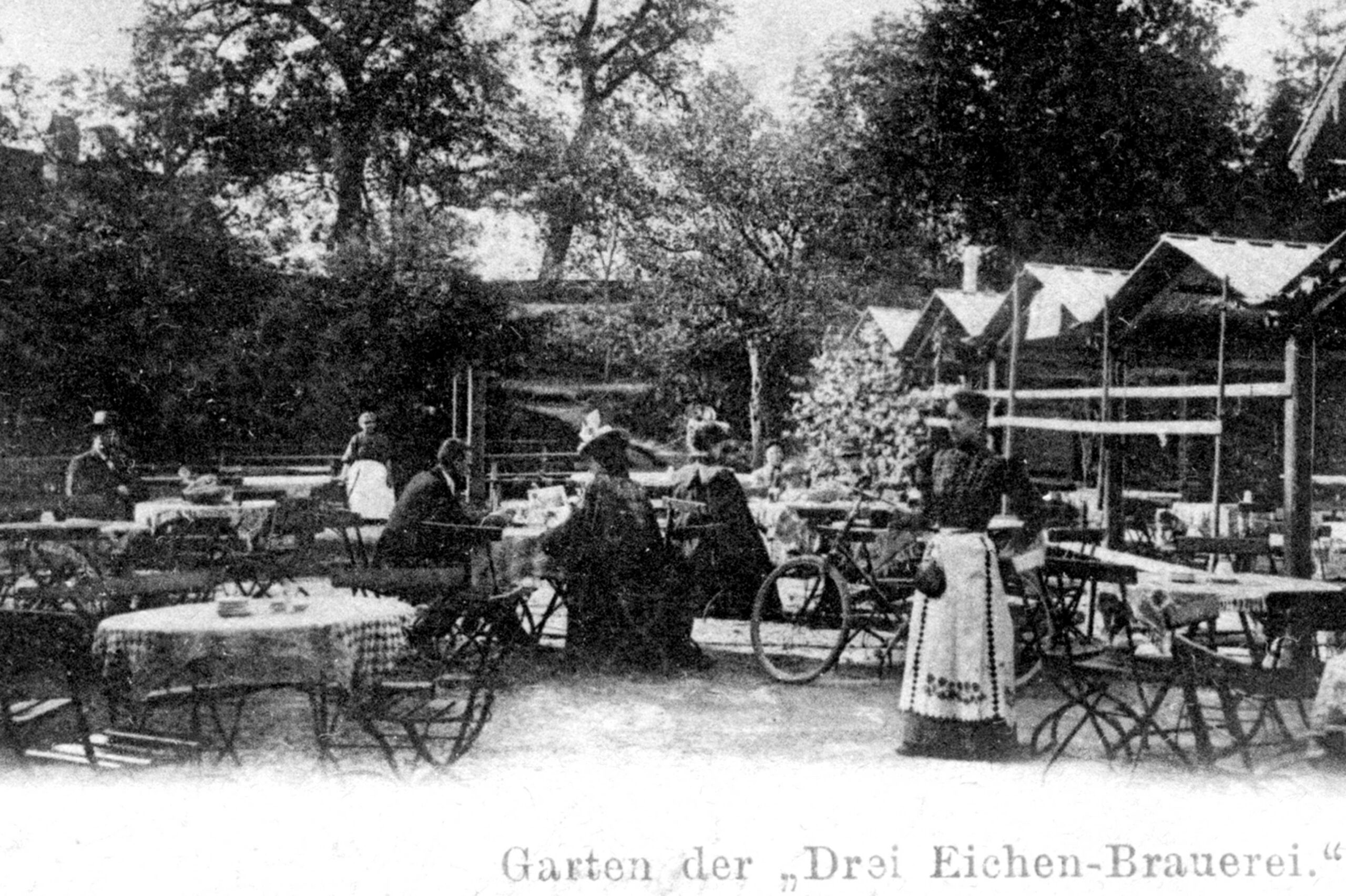 Această cartea poștală, înscripționată cu textul Grus aus Hermannstadt – Garten der „Drei Eichen Brauerei” // Salutări din Sibiu – Grădina de vară a „Fabricii de Bere Trei Stejari”, a fost tipărită la tipografia sibiană Josef Drotleff și publicată de editura librăriei G. A. Seraphin din Sibiu. Fotografia folosită pentru această ilustrație a fost realizată în ultimul deceniu al sec al XIX-lea.