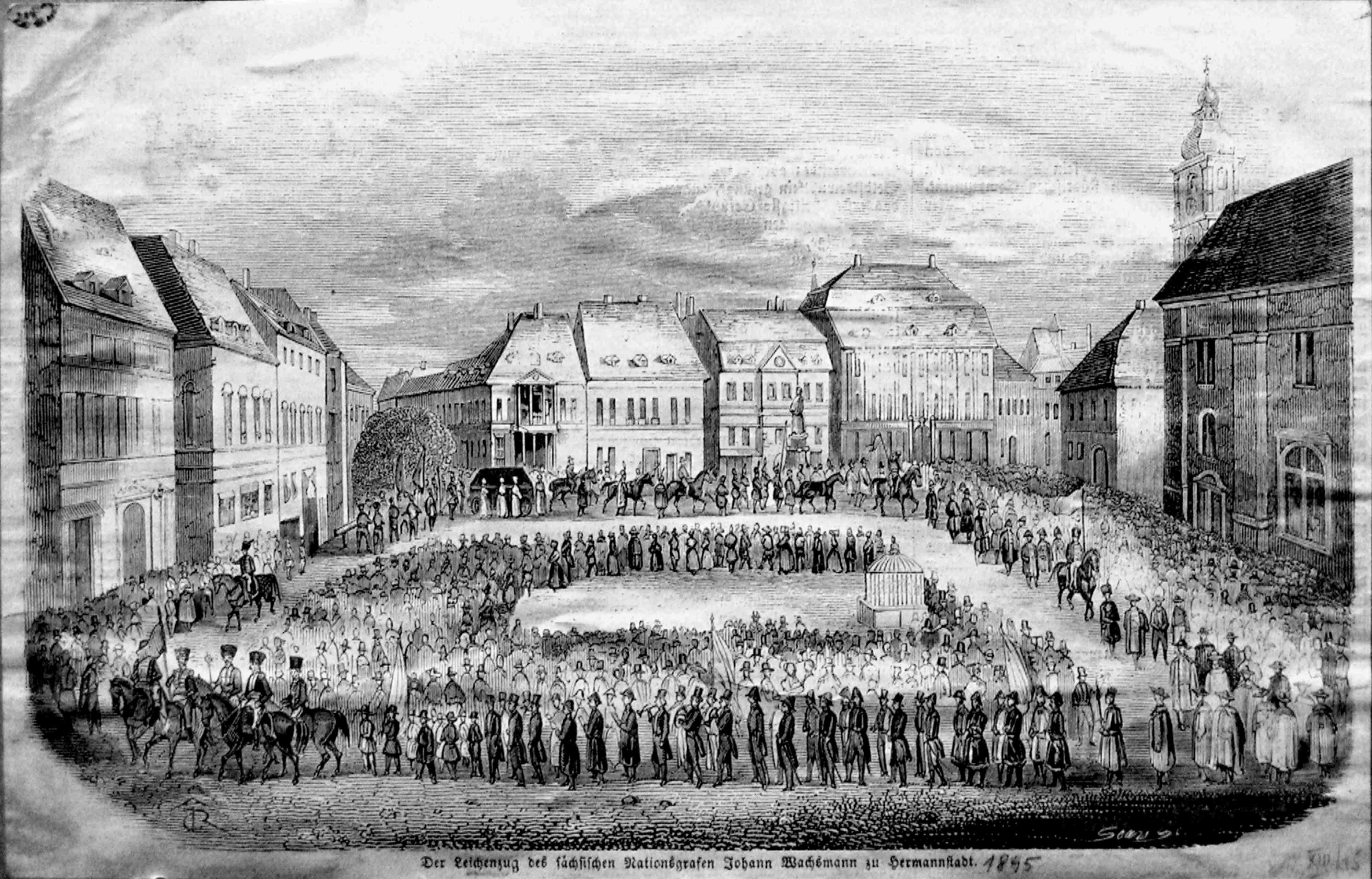 Cu un deceniu mai devreme, în 1845, cotidianul din Leipzig publicase o ilustrație în care apare, de asemenea, Piața Mare din Sibiu. Xilogravura intitulată „Der Leichenzug des sächsischen Nationsgrafen Johann Wachsmann“, bazată pe un desen al fotografului sibian Theodor Glatz, înfățișa cortegiul funeral al comitelui sas, judele regal Johann Wachsmann, născut la Medias la 29 noiembrie 1774 și decedat la Sibiu la 7 mai 1845.