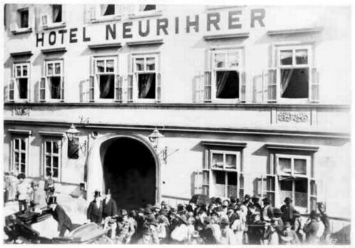 În timpul șederii sale la Sibiu, Brahms a fost cazat la hotelul Neurihrer din strada Heltauergasse Nr.11, astăzi Nicolae Bălcescu nr.9. Hotelul a fost inaugurat la 7 noiembrie 1872 de către Neurihrer Peregrin. În cărțile de adrese din perioada anilor 1875-1896, hotelierul Neurihrer Peregrin este menționat și ca proprietar al clădirii respective.