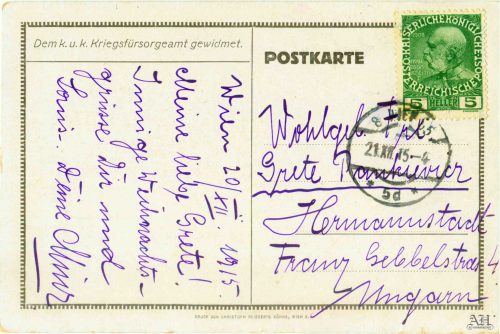 Carte poștală circulată internațional între Viena și Sibiu ~ ștampilat: 21 septembrie 1915.