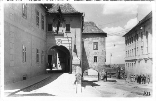 Primăria veche / Casa Altemberger-Pempflinger și Turnul de Poartă. Carte poștală circulată septembrie 1970. Fotografia a fost realizată aproximativ 1960.