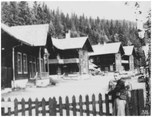 Fotografie realizată în fața terasei Sanatoriului Militar din Păltiniș. Pe balustrada terasei era montată o pancartă cu lozinca „BINE AȚI VENIT LA ODIHNĂ“. In Memoriam Lorenz Thal.