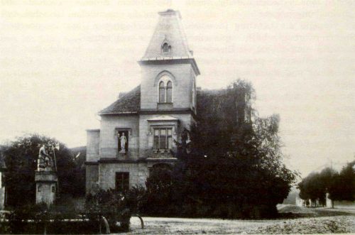 Villa Michaelis cu fântăna ornamentală ‚Josefbrunnen‘ / ‚Fântăna Josefină‘. Fotografie realizată de Emil Fischer în jurul anului 1910. Fotografie din arhiva grupului Alt-Hermannstadt.