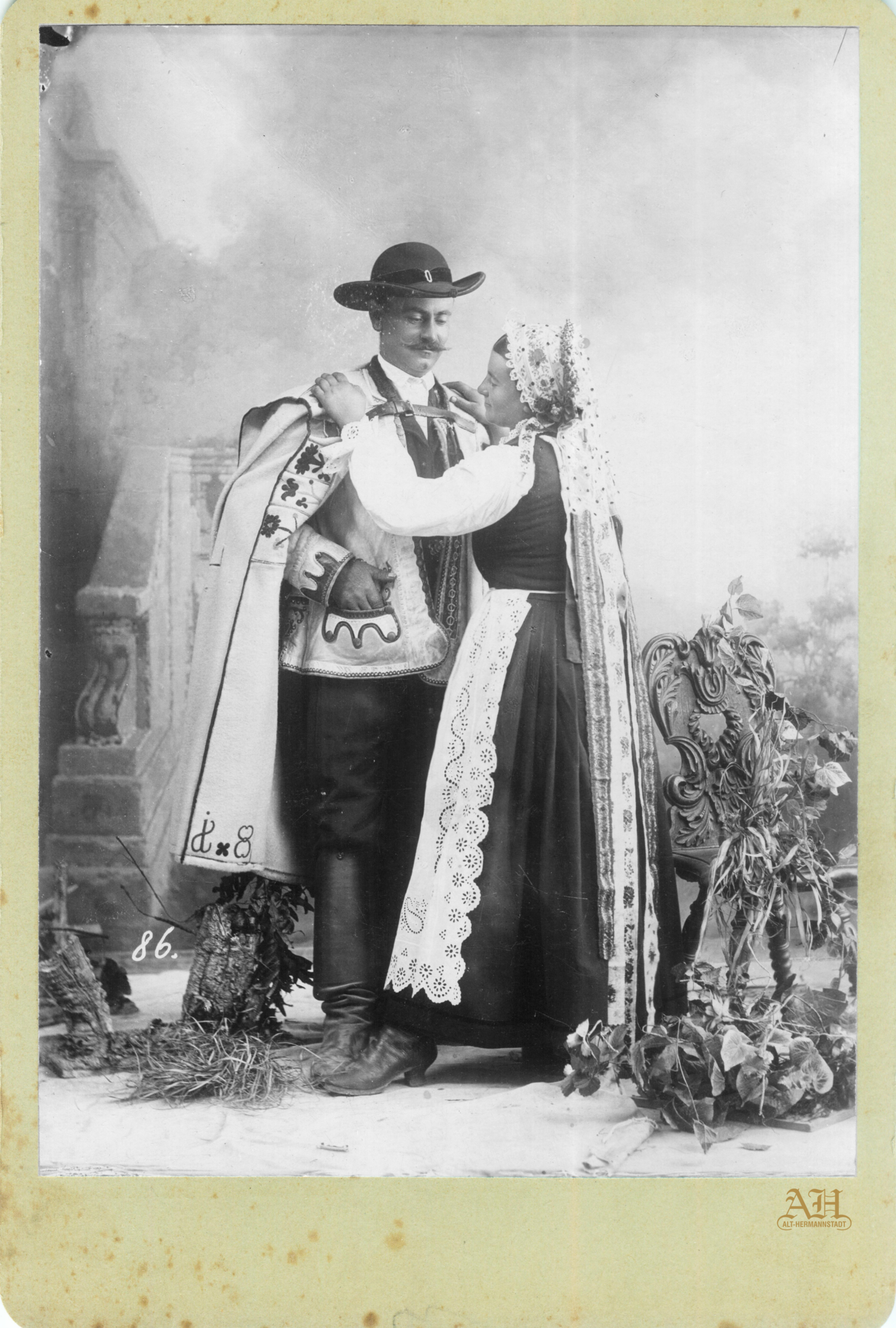 Această frumoasă fotografie arată o pereche săsească în port popular din localitatea Bălcaciu // Bulkesch // Bolkács. Fotografia a fost realizată de fotograful Wilhelm Auerlich, ( Brașov, 1853 – Sibiu, 1917 ), care deținea în perioada anilor 1887-1916 un atelier fotografic în Sibiu, la adresa Nicolae Bălcescu nr.53. Din 1884 până îm 1887, atelierul funcționase sub numele fotografei Julie Herter, ( Cârța, Harghita, 1838 – Sibiu, 1922 ). După ce Wilhelm Auerlich s-a căsătorit cu Julie Herter în 1887, atelierul fotografic a firmat sub numele Wilhelm Auerlich.