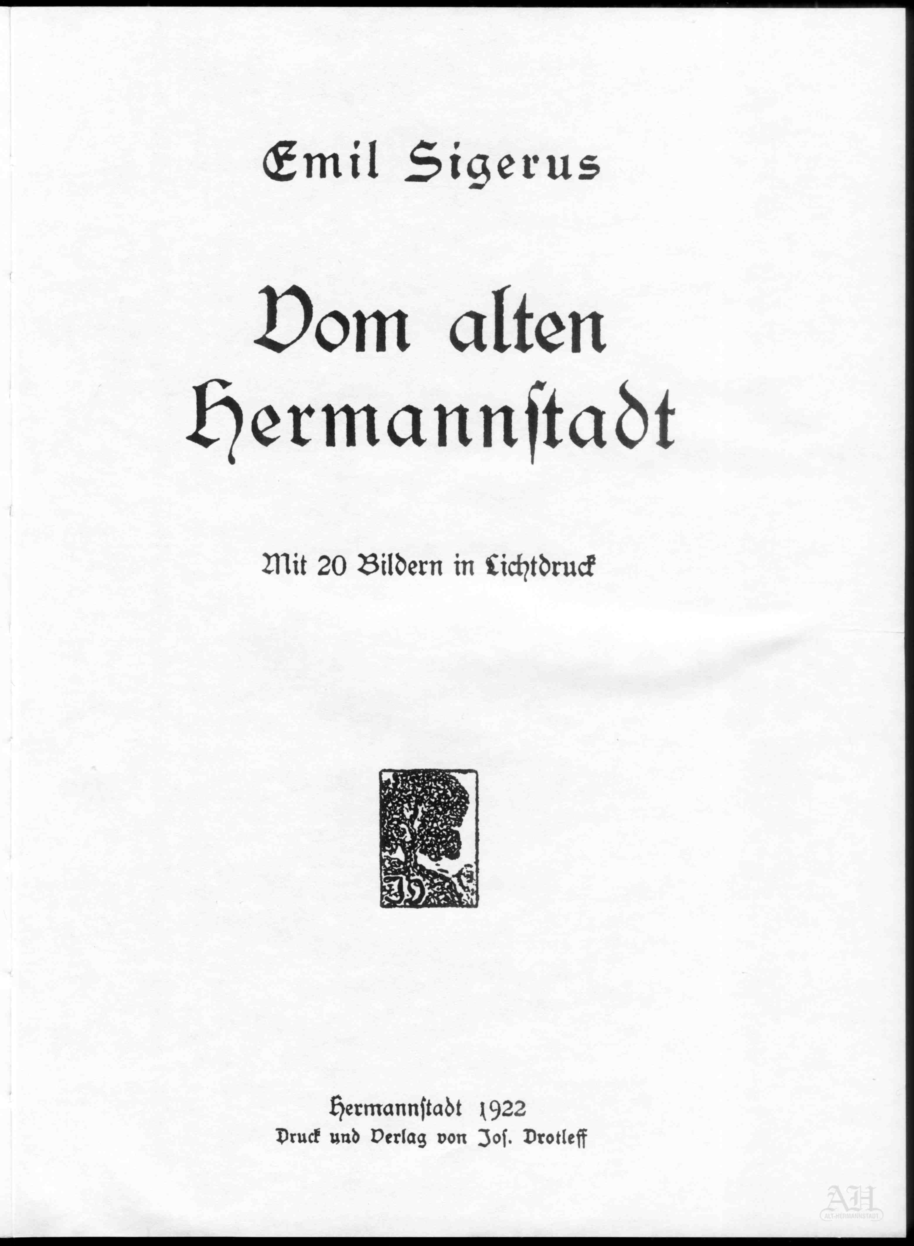 „Despre vechiul Sibiu” // „Vom alten Hermannstadt” vol. I – 1922