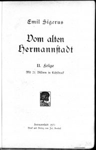 „Despre vechiul Sibiu” // „Vom alten Hermannstadt” vol. II – 1923