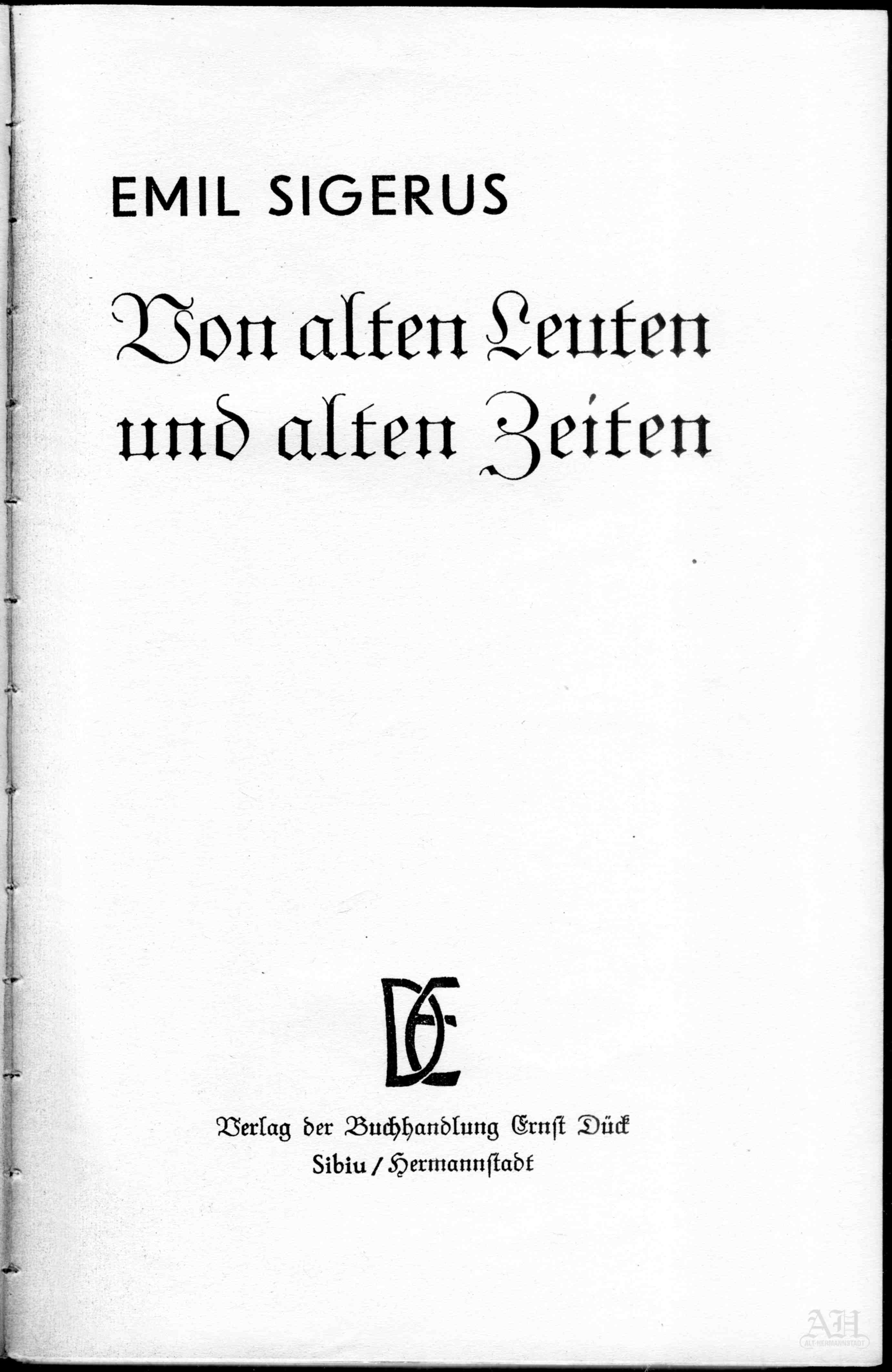 „Despre oameni bătrâni și vremuri trecute“ // „Von alten Leuten und alten Zeiten“ – 1937 -