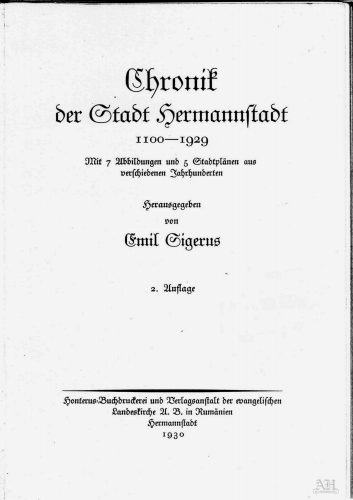„Chronik der Stadt Hermannstadt 1100-1929“ // „Cronica orașului Sibiu 1100-1929“ ~ Emil Sigerus