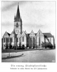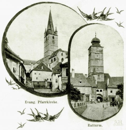 „Evangelische Pfarrkirche und Ratturm“ // „Biserica evanghelică si Turnul Sfatului“