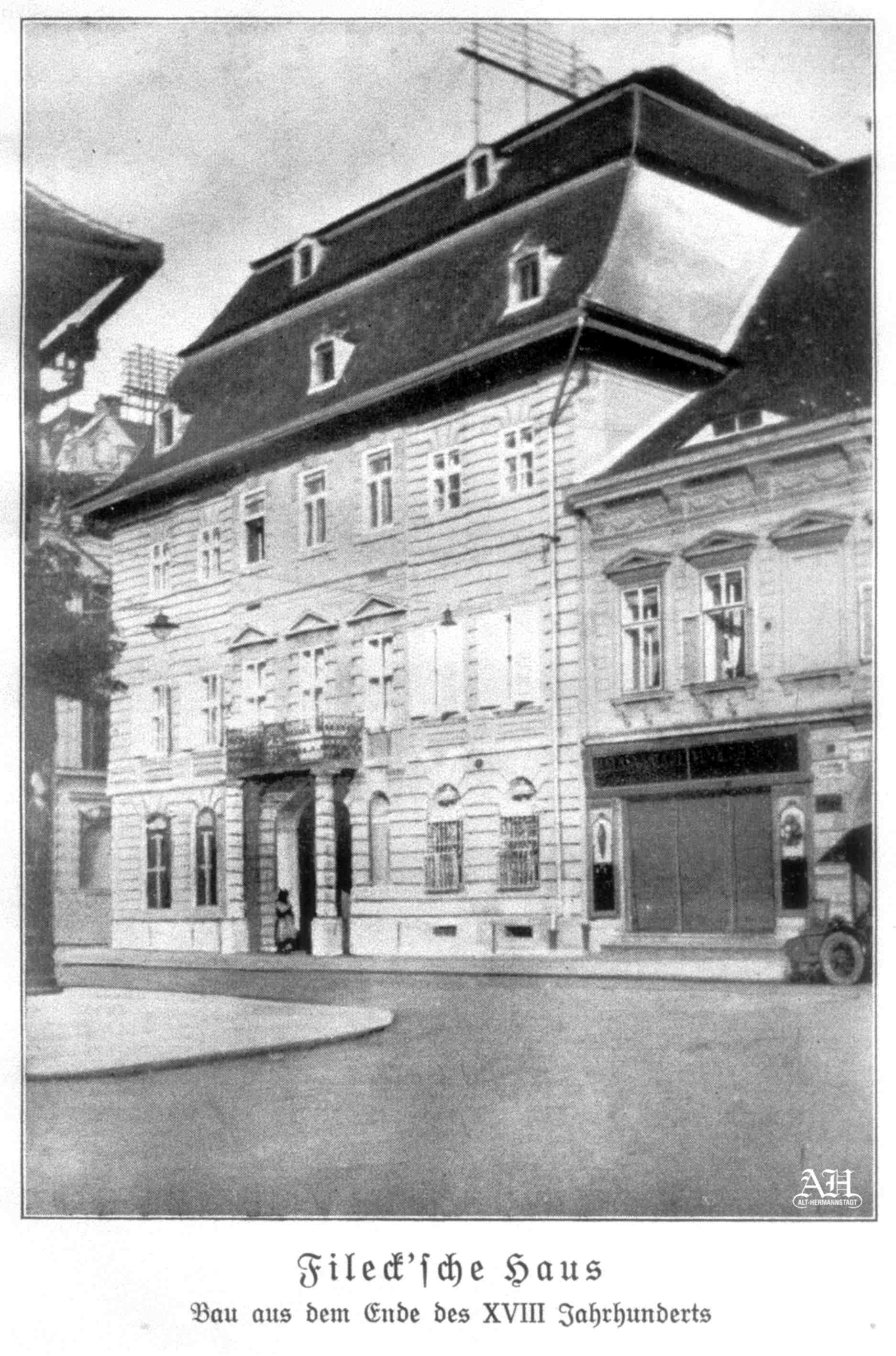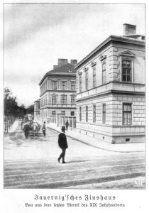„Casă ridicată de farmacistul Karl Jikeli în 1881, care îşi mută aici farmacia Coroana (Zur Krone).