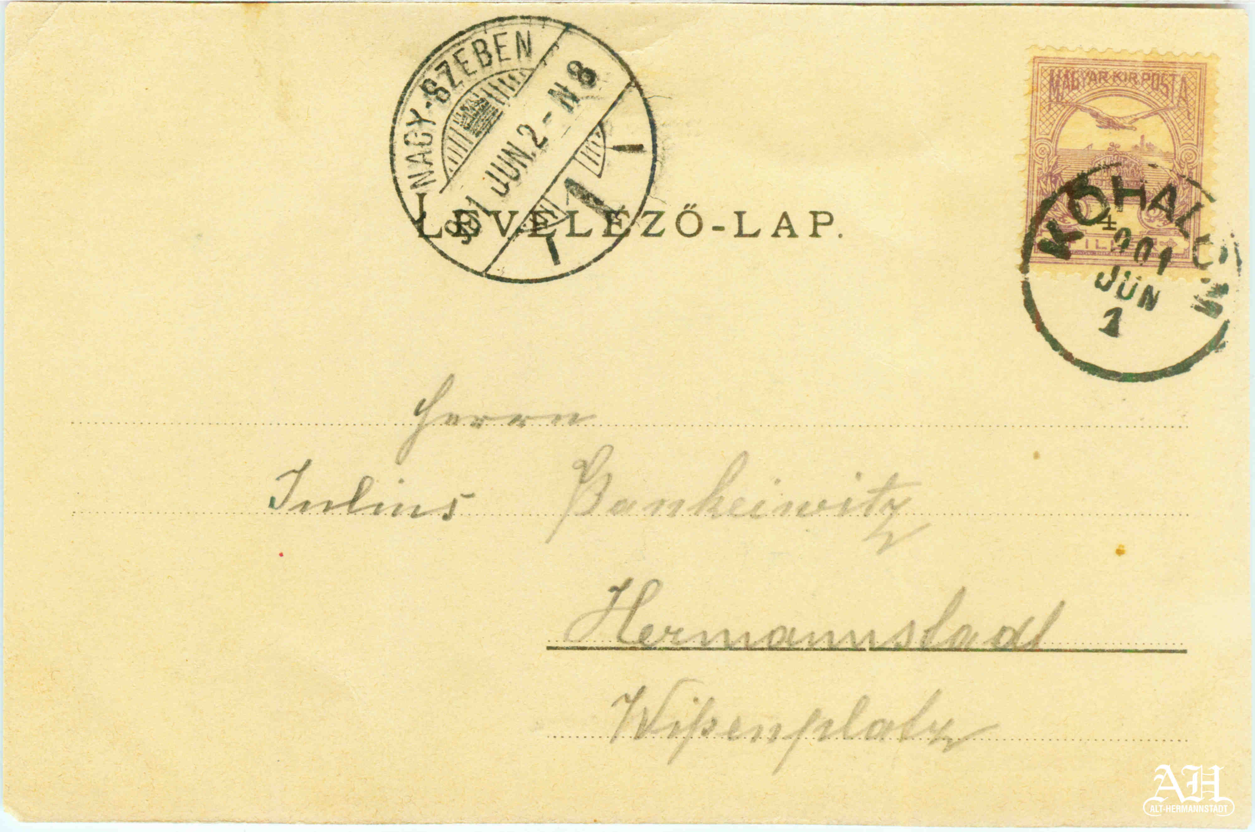 Carte poștală tip LEVELEZÖ-LAP editată 1918, tipărite la Institulul tipografic sibian „Kunstanstalt Jos. Drotleff, Hermannstadt“.