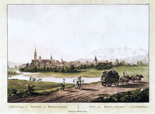 „Sibiu (vedere) spre răsărit desenat după natură de Franz Neuhauser // Hermannstadt (Ansicht) gegen Morgen nach der Natur gezeichnet von Franz Neuhauser”