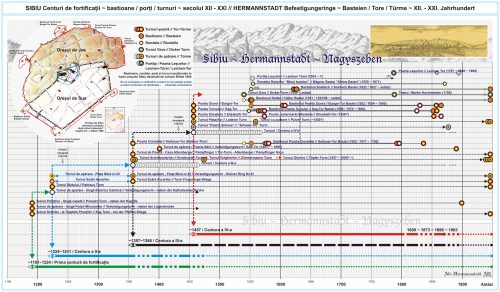 Colaj realizat cu ajutorul ilustrațiilor și fotografiilor din arhiva grupului Alt-Hermannstadt și planul orașului Sibiu din 1875, copiat și completat cu texte olografice de Johann Böbel în 1882/1883. În partea stânga-sus a colajului se vede fotografia realizată de Theodor Glatz ante 1858, cod de inventar GD 18238, iar în partea stânga-jos se află instantaneul cu numărul de inventar GD 18235 realizată în jurul anului 1860 și xilogravura din cartea jurnalistului Charles Boner „Transilvania – produsele şi poporul său” apărută la Londra în anul 1865.