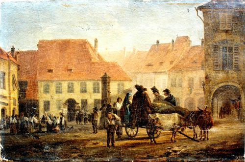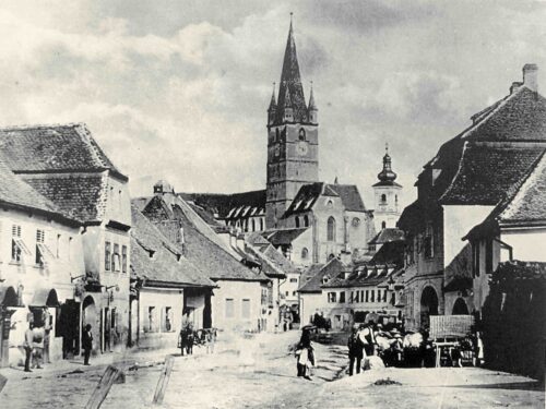 „Kleiner Ring und Laubenkirche in Hermannstadt” // „Piața Mică și Biserica Arcadelor din Sibiu”