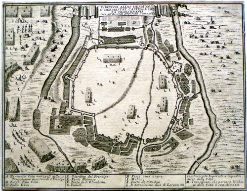 1683 Magistratul instalează din nou crucea mare de piatră în fața Porții Elisabeta și construiește o boltă peste ea.